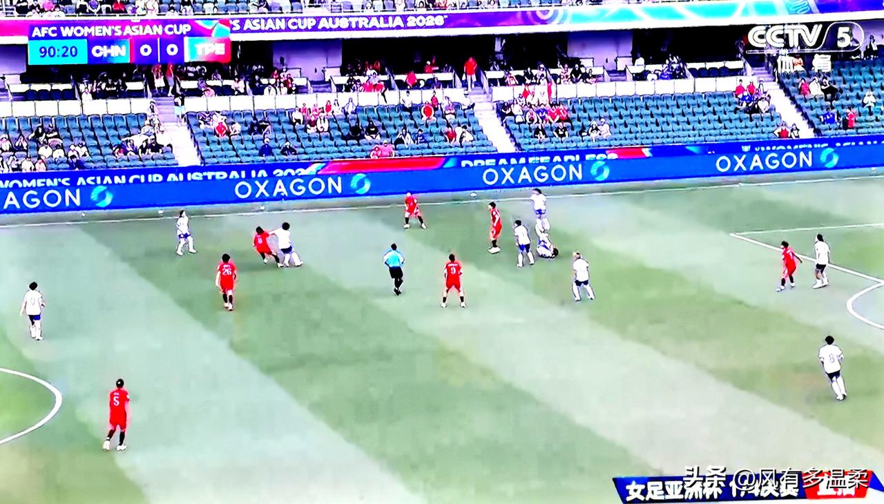 亚洲杯四分之一决赛,中国队与中国台北队血战120分钟,中国队加时进球,2:0杀进四强,半决赛战澳大利亚。 都说女足是铿锵玫瑰,可谁知玫瑰的绽放,是多少汗水浇灌。女足亚洲杯四分之一决赛,中国女足同中国台北女足,常规时间战成0:0,虽然中国女足占据了控球权,优势明显,但就是破不了台北女足的密集防守。主教练米里西奇尽遣攻击手上场,中国队自始至终压制台北队,多次边路或底线传中,都被台北门将陈思瑜没收皮球,中国队无奈带着0:0进入加时赛。 加时赛,体力下降的台北女足,防守变缓。中国队乘势猛攻,终见成效。王霜禁区接球,没有机会射门,回做邵子饮,邵子钦射门入网,中国队1:0终于领先。加时赛下半场邵子钦造点,乌日古木点球被扑,中国队失去扩大比分的机会。王霜因冲撞守门员吃到黄牌,这样就因累计黄牌的原因缺席下一场同澳大利亚队的半决赛,中国队少了前场核心,形势变得严峻。加时赛第117分钟,替补上场的13号传中时皮球碰到台北后卫陈英慧反弹入网,中国队最终以2:0取胜,进入四强,同时也取得了世界杯的参赛证。 半决赛将于3月17日进行,对手是澳大利亚队。中国队要比澳大利亚队少休息一天,又是经历120分钟还多的比赛,王霜又缺席比赛,中国队受限体能和核心缺战,半决赛前景凶险。祝愿中国女足半决赛顺风顺水,马到成功,旗开得胜!女足亚洲杯现场 女足亚洲杯赛制