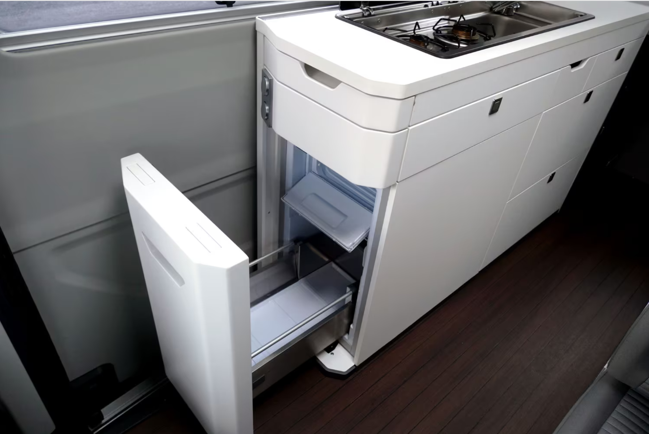 特殊车辆 Volkswagen Grand California 680,大加州的长轴版,前半部分完全一样,长轴版加长了80厘米,后横床就能改成双纵床了,车顶的额头床就取消了。