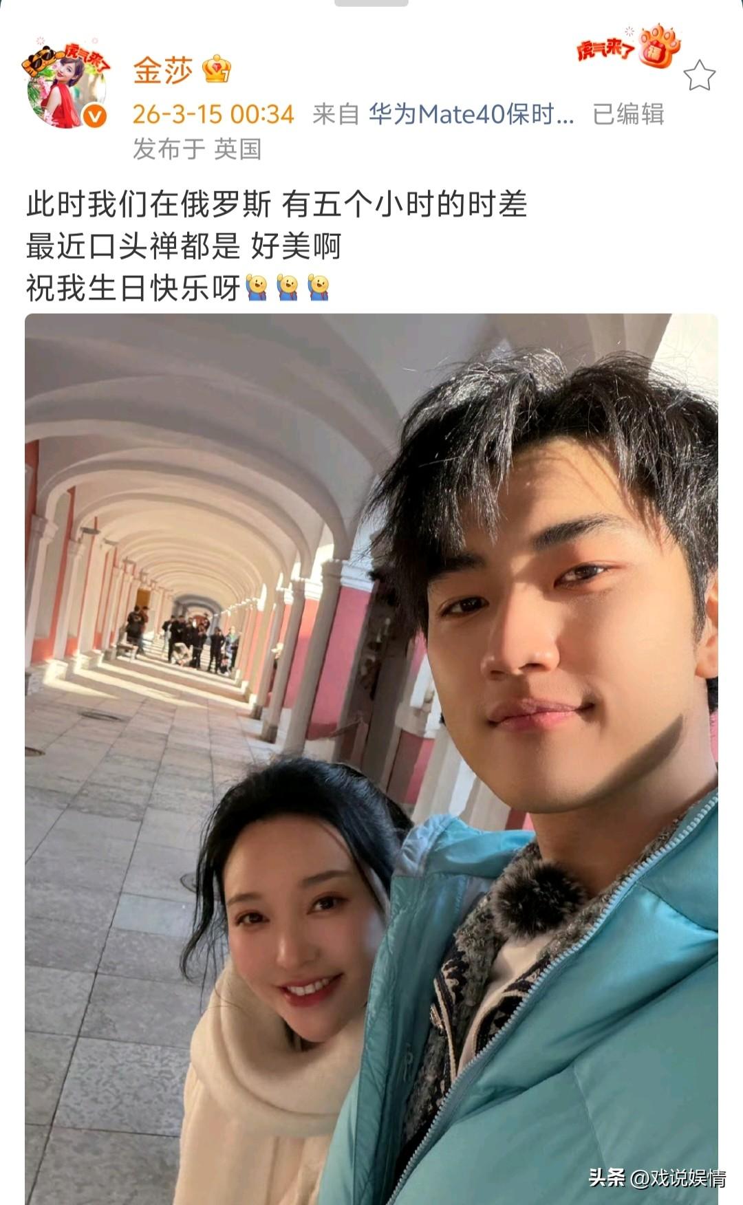 金莎与孙丞潇同游俄罗斯,晒合照庆生! 3月15日,金莎晒出一张与男友孙丞潇的合影,为自己庆祝43岁生日。 照片中的孙丞潇穿着一件浅蓝色羽绒服,领口有毛绒装饰,发型蓬松利落,正温柔地看向镜头,嘴角带着浅浅笑意。 金莎则依偎在孙丞潇身侧,穿着米白色毛绒围巾和外套,头发微卷,笑容甜美,眼神明亮,整个人显得温婉又亲切。 当初这对相差17岁的姐弟恋相当不被人看好,没想到两人依然坚持相恋了这么多年,且孙丞潇已向金莎求婚成功。真是越不被看好的情侣越是走得长久啊!