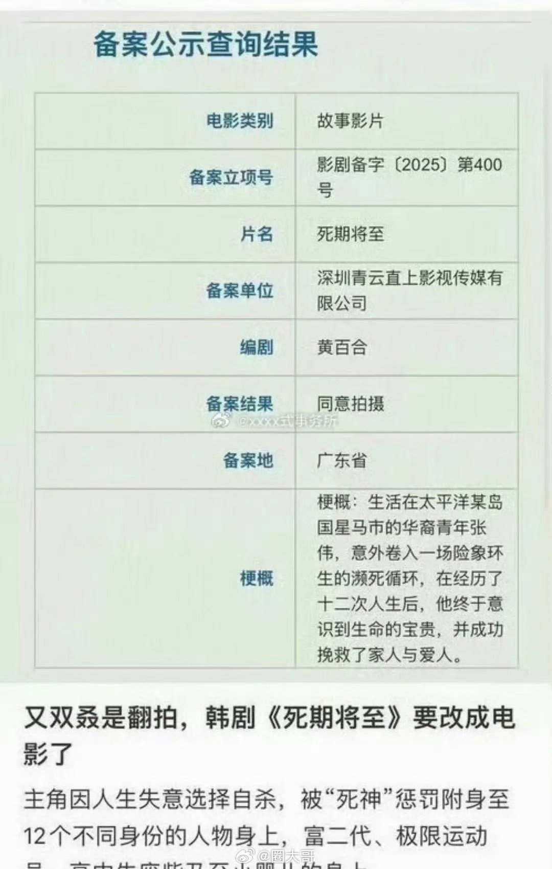 赵今麦范丞丞电影翻拍韩剧死期将至赵今麦和范丞丞新电影《死期将至》酷飒是翻拍韩剧啊,据说易烊千玺也会客串,很厉害的新人导演,看得出来范丞丞的演技被电影圈认可了啊,期待剧组能早日官宣啊!曝赵今麦范丞丞电影是翻拍韩剧