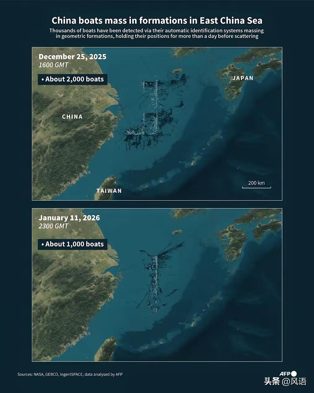 从L阵到一字长蛇阵:千船布阵背后,是科技感知与渔猎智慧的精准同频 从去年12月26日两千艘渔船列阵L形口袋,到今年1月17日千艘渔船铺开一字长蛇阵,东海之上的阵型更迭,绝非随意为之的调度变化,而是中国渔民依托现代科技态势感知,精准捕捉鱼群洄游规律后,做出的最科学、最高效的捕捞抉择。船数增减、阵型转换,背后藏着对鱼流路径、鱼群宽度的极致把控,是科技赋能传统渔业,实现“知鱼而动、因鱼布阵”的生动写照。 L形阵型的登场,对应着鱼群洄游初期的核心特征。彼时带鱼、小黄鱼刚进入东海核心渔场,洄游路径集中、游动方向明确,鱼群宽度较窄且密度极高,如同整装前行的队伍,尚未在海流中大幅扩散。两千艘渔船以L形合围,正是瞄准了这一鱼情:长边横截洄游主通道,短边封堵侧翼扩散空间,形成“请君入瓮”的合围之势,以最大规模船队锁死集中鱼群,不让一尾渔获漏出包围圈。这一阵型的选择,建立在对鱼群初期分布的精准感知之上,是态势感知系统锁定鱼群宽度、路径后,量身打造的合围战术。 而时隔二十余日,阵型从L形转为一字长蛇阵,渔船数量从两千艘精简至一千艘,核心逻辑依旧是鱼群变、阵型变,感知准、决策准。进入一月中旬,鱼群洄游进入中期,在长途迁徙与海流作用下,原本集中的鱼群逐渐横向扩散,洄游宽度大幅拓展,不再是窄幅密集的队伍,而是铺展成宽达十余公里的鱼群带。此时L形阵型已无法覆盖扩散后的鱼群宽度,强行合围只会顾此失彼;而一字长蛇阵绵延数百公里,能以线性布局全面拦断拓宽后的洄游通道,实现无死角拦截。同时,随着鱼群分散,无需两千艘船密集作业,千艘渔船依托精准态势感知,均匀排布、各司其职,便能达到最优捕捞效率,船数精简正是资源优化、感知精准的直接体现。 这一切的核心支撑,是现代科技构建的全域态势感知体系。水下声呐实时探测鱼群深度、宽度与密度,卫星遥感追踪海流、水温变化锁定洄游路径,北斗导航让每一艘渔船都能精准掌握自身位置与鱼群动态,甚高频电台实现千船信息实时互通。渔民不再仅凭经验预判,而是通过科技手段,清晰“看见”鱼群从集中到扩散的全过程,精准掌握洄游宽度的变化、游动路线的偏移,从而果断调整阵型、优化船数。L阵与一字阵的转换,两千艘与一千艘的增减,本质是科技感知数据,转化为实战化捕捞策略的过程。 从L形合围到一字长蛇拦截,从两千艘密集布阵到一千艘精准作业,东海渔船的阵型更迭,打破了传统渔业“靠天吃饭”的局限。这不是盲目调度,而是以科技感知为因,以阵型调整为果;以鱼群洄游规律为核心,以规模化协同为手段的智慧渔猎。西方误读为军事集结,终究是看不懂这份根植于自然规律、赋能于现代科技的民生智慧。万顷碧波之上,船阵随鱼情而变,科技伴渔耕而行,这独属于中国东海的捕捞奇观,正是人与自然、传统与科技完美融合的最好见证。
