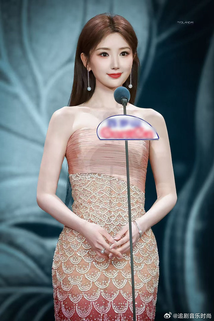 毛晓彤肩颈线这条粉裙简直就是为她量身定做的吧?把她的肩颈优势全显出来了。皮肤白到