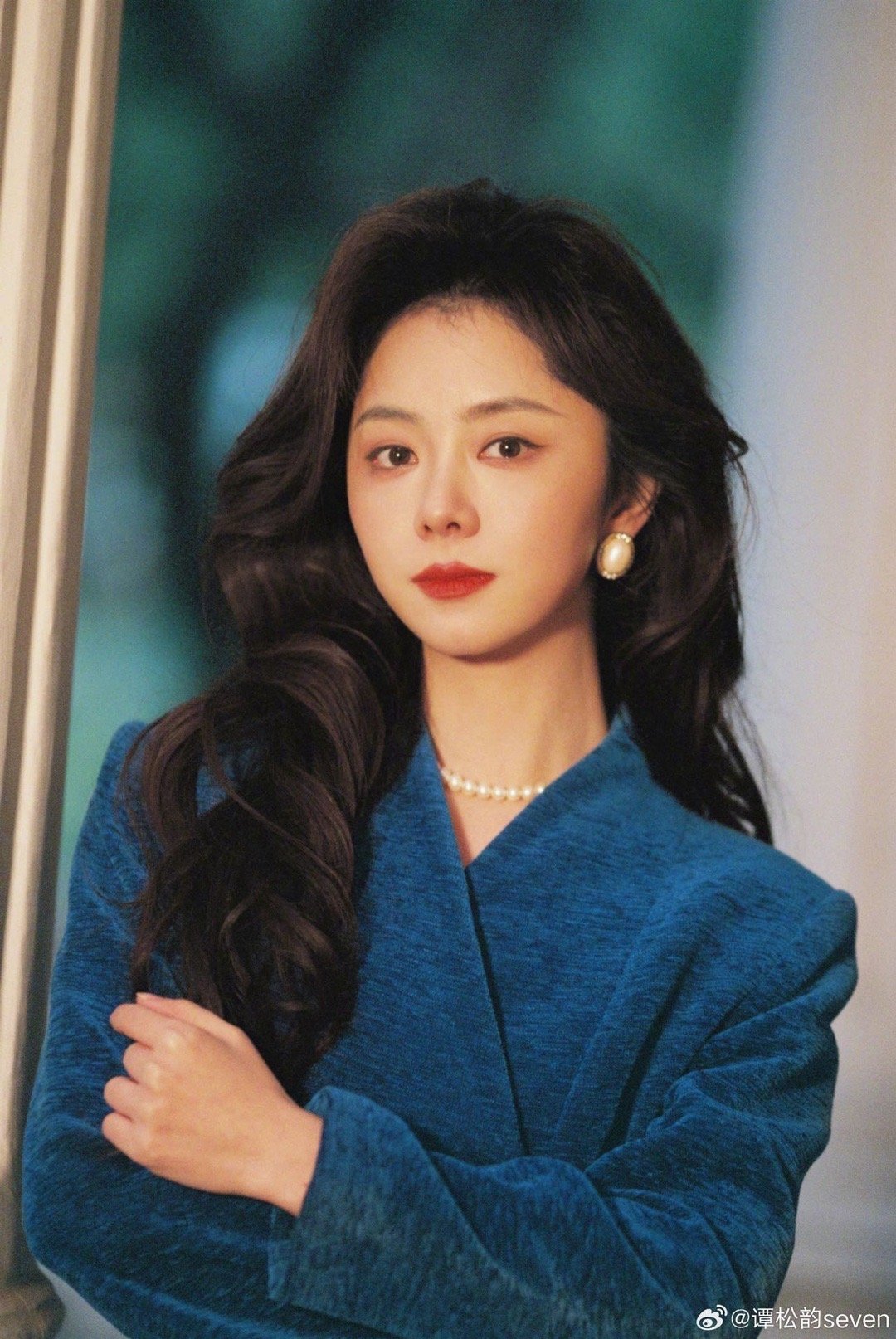 谭松韵别试探了有市场谭松韵深蓝色丝绒垫肩西装搭配蓬松大波浪,温柔和强势平衡得刚刚好。
