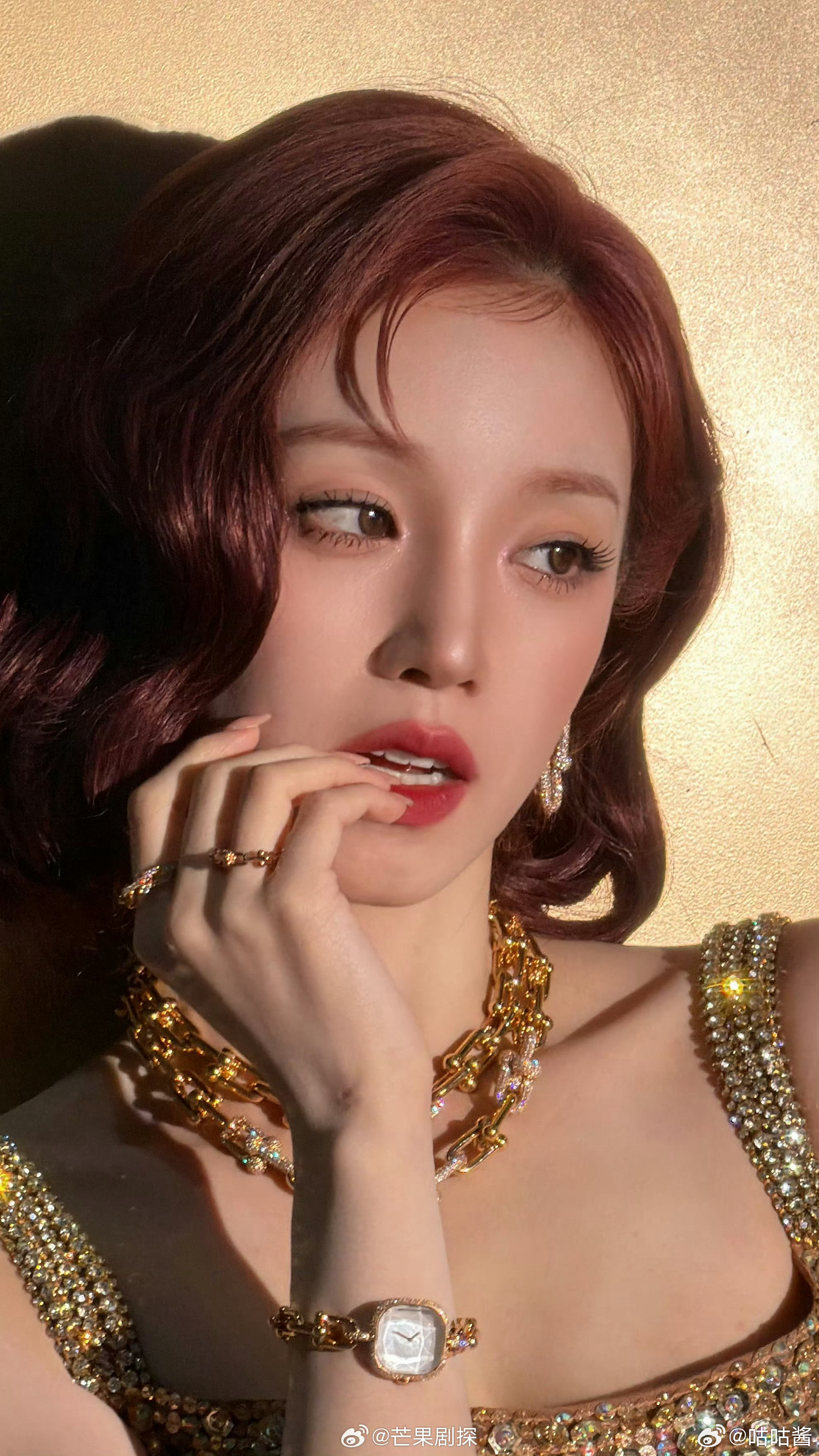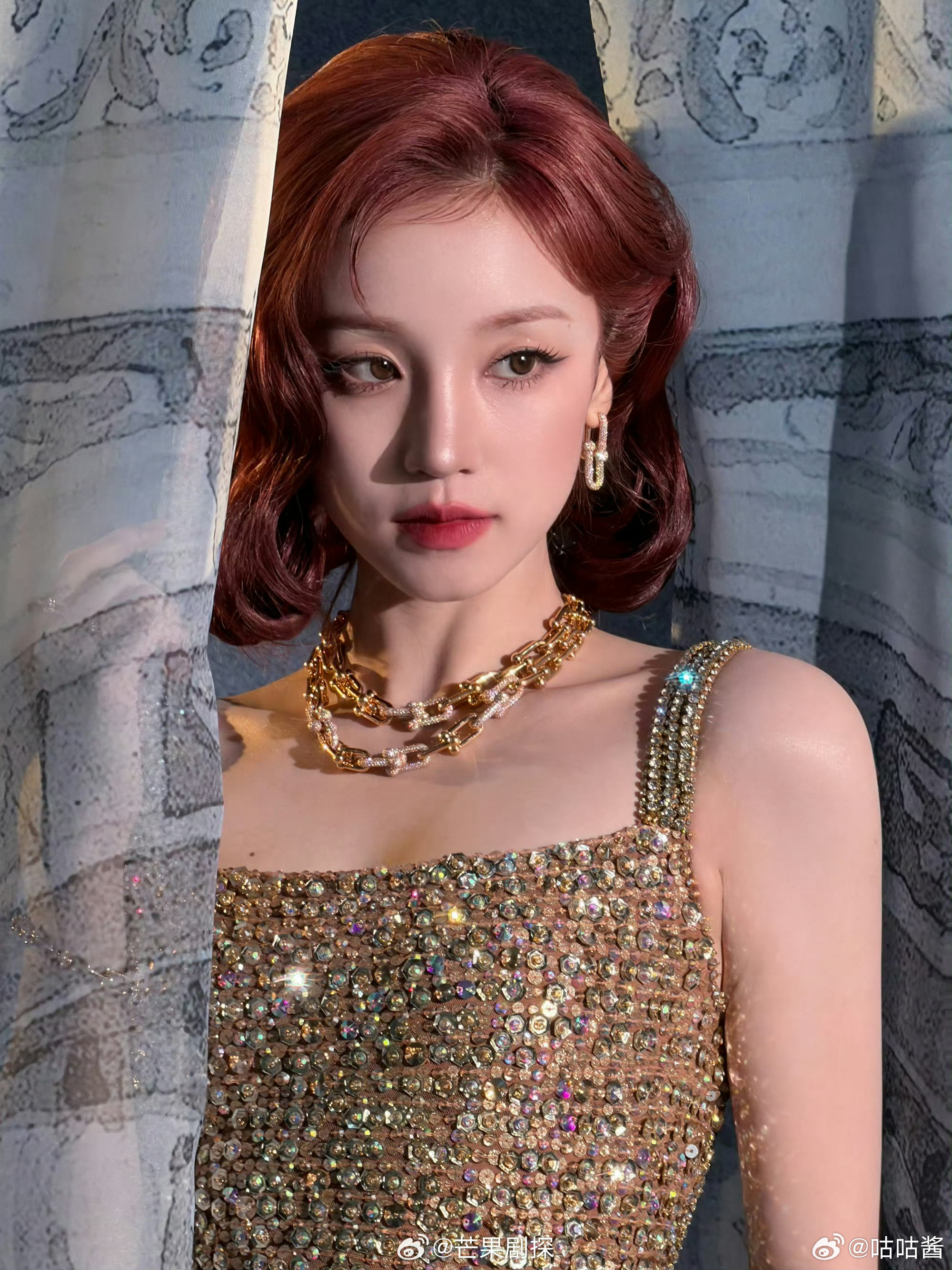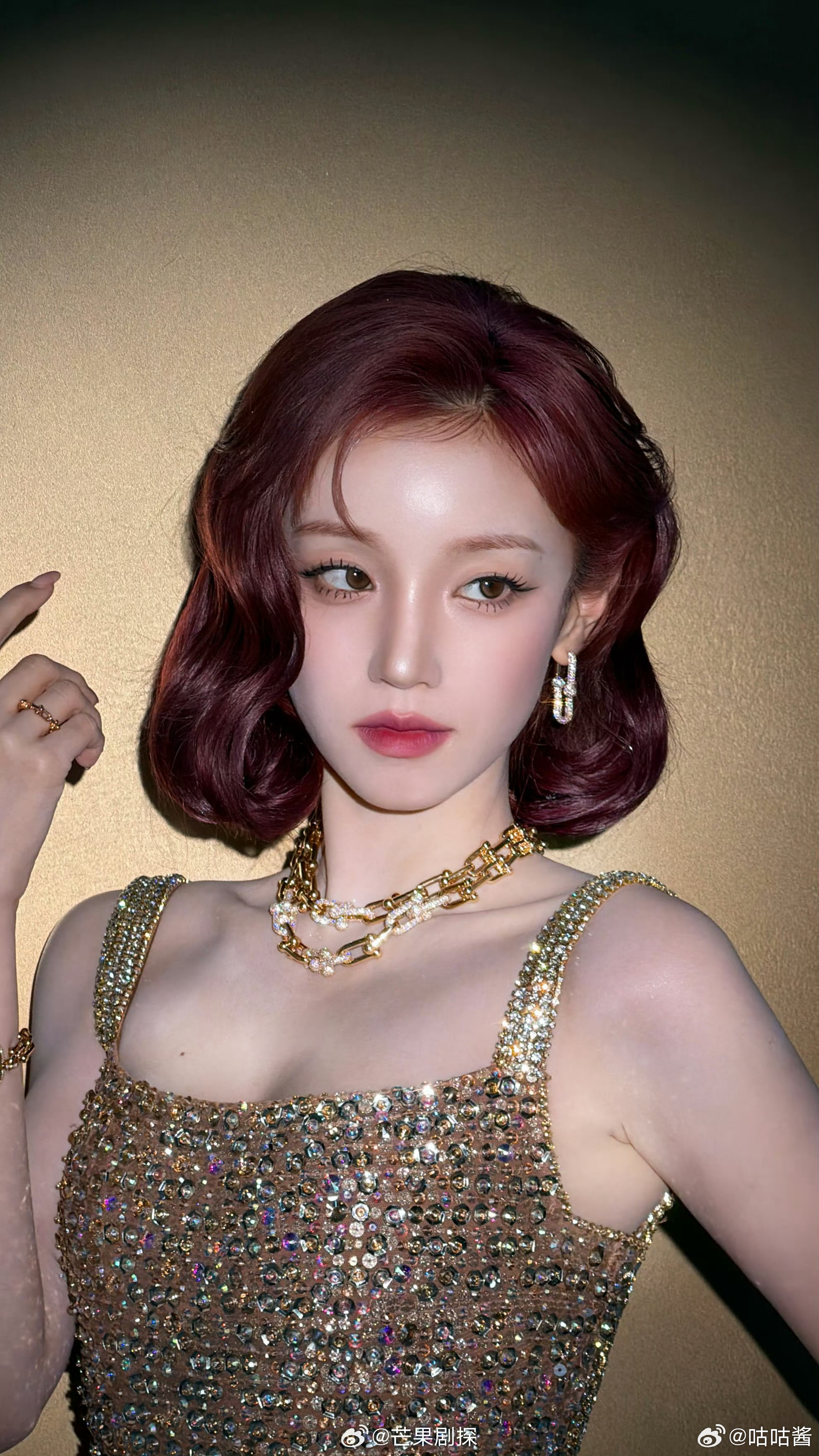 宋雨琦这组鎏金港风造型,直接美到封神!✨红棕复古卷发配满钻礼裙,一颦一笑都是