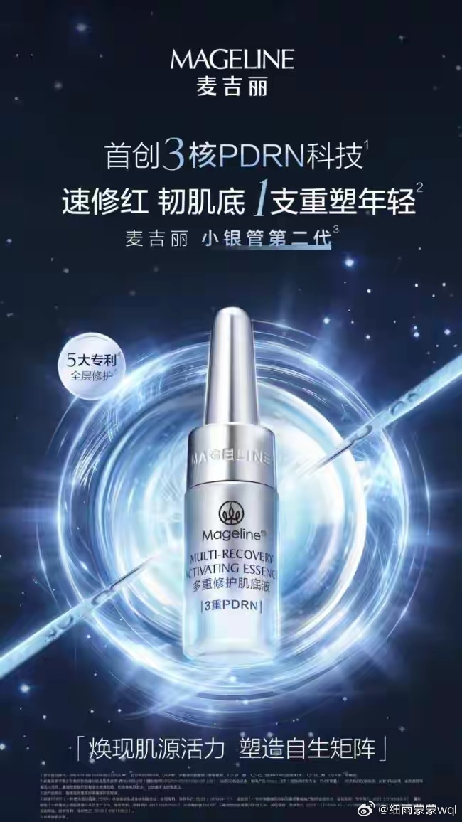 全皮层修护真相揭秘麦吉丽小银管第二代 麦吉丽联合国内顶尖科学家及上游原料科研团队,历经长期研究与反复验证,最终立足全皮层精准修护,探索出「3核PDRN科技」。这项创新技术从皮肤结构本身出发,整合三种不同作用靶点的PDRN,通过专研双透皮技术实现层层精准修护:首先是线状PDRN负责表层即刻修护,然后是专利球形PDRN能深入基底层,另外还有靶向脂质体PDRN直达真皮细胞,这样层层递进,由此实现从表皮到肌底再到细胞的全层修护,与市面上单一维度的PDRN产品形成本质区隔。除了在原料和配方上创新外,为了实现更好的吸收效果,小银管第二代运用了微球和纳米脂质体包裹渗透技术,让产品里的营养成分以更小的分子被皮肤所吸收,达到更好的使用效果。 麦吉丽正以扎实的科研创新,重新定义中国高端护肤品牌的科技高度。