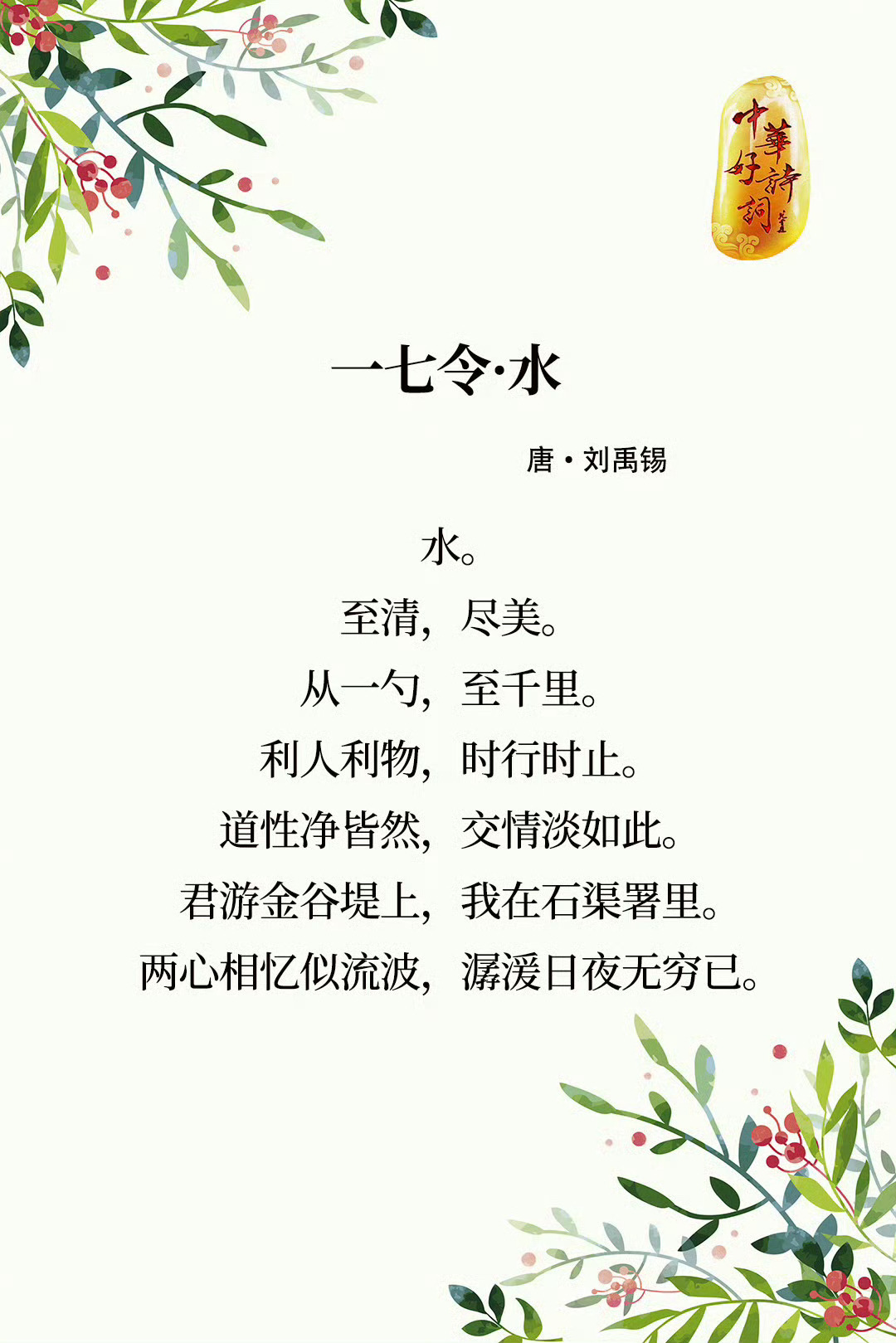“洗尽古今人不倦,将知醉后岂堪夸。”一字至七字诗,其形如宝塔,以题为韵,对仗工整,而后演化为词调,即《一七令》。