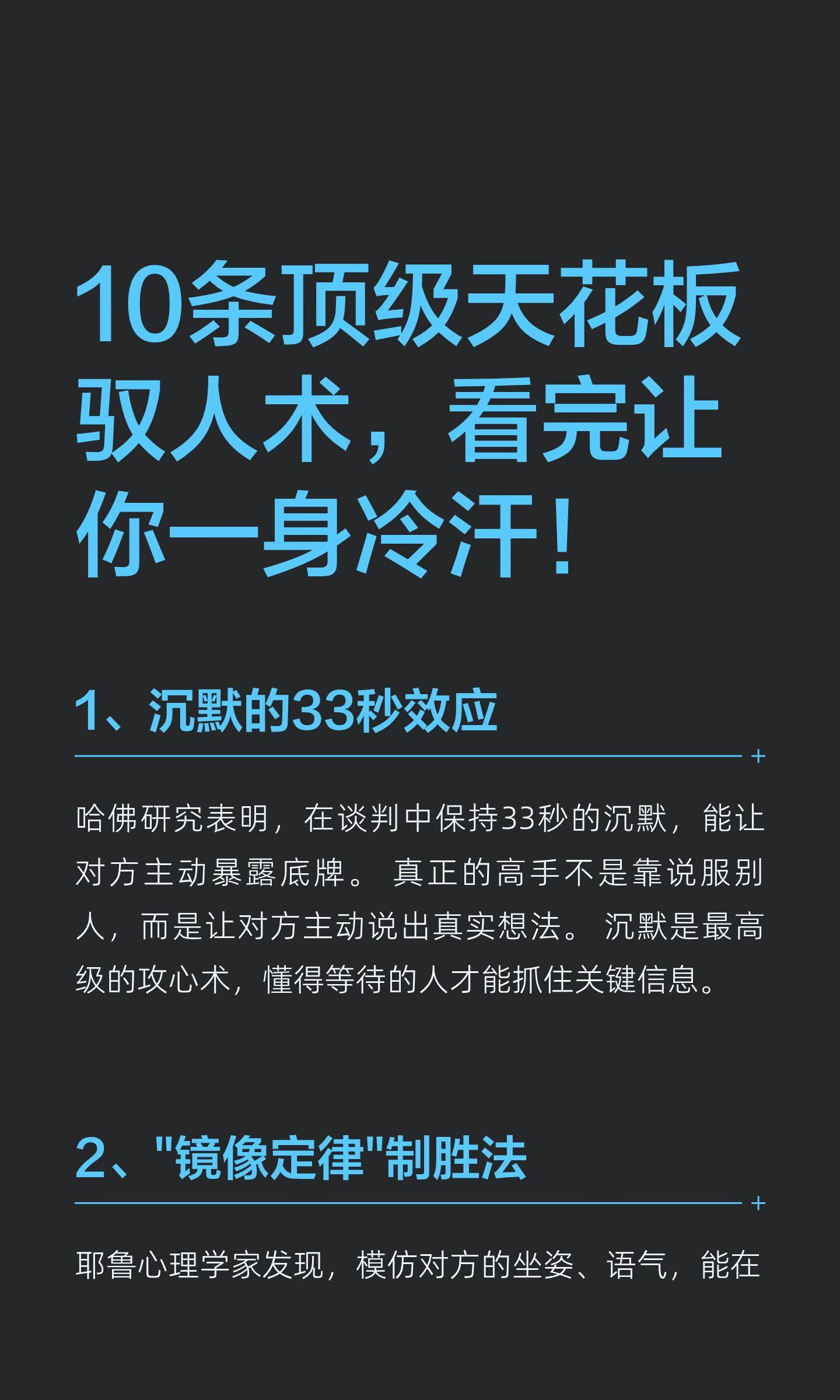 10条顶级天花板驭人术,看完让你一身冷汗!