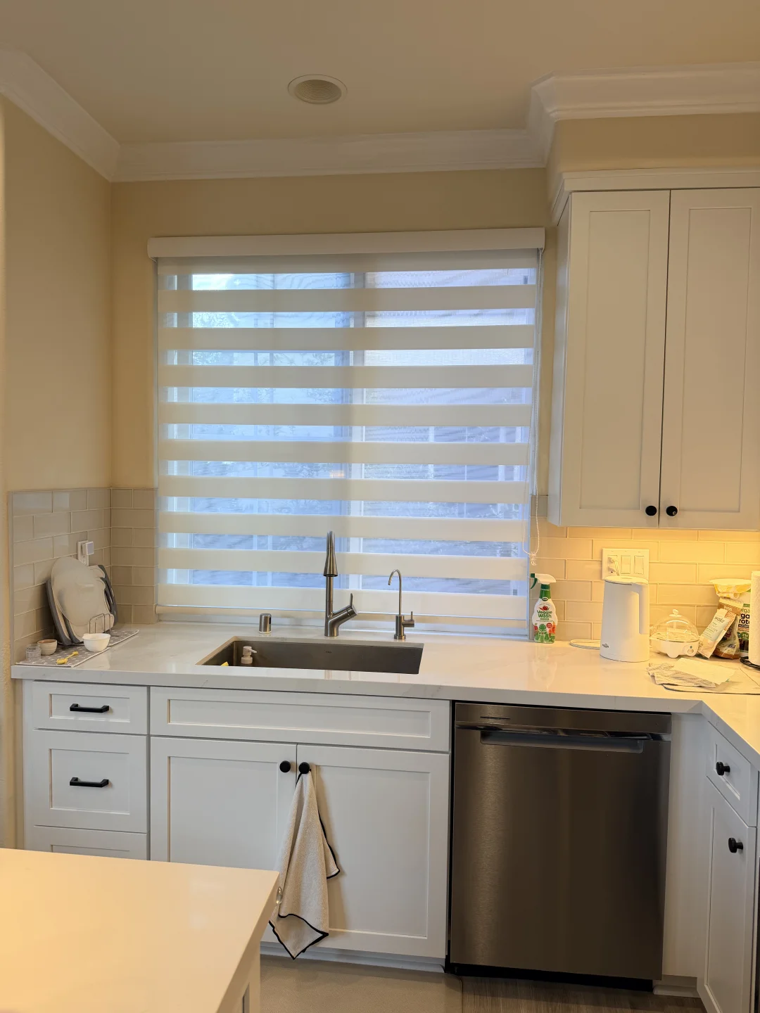 看右边👉换上我们的**定制斑马帘(Zebra Shades)**后,整个房间的气质瞬间不一样了: