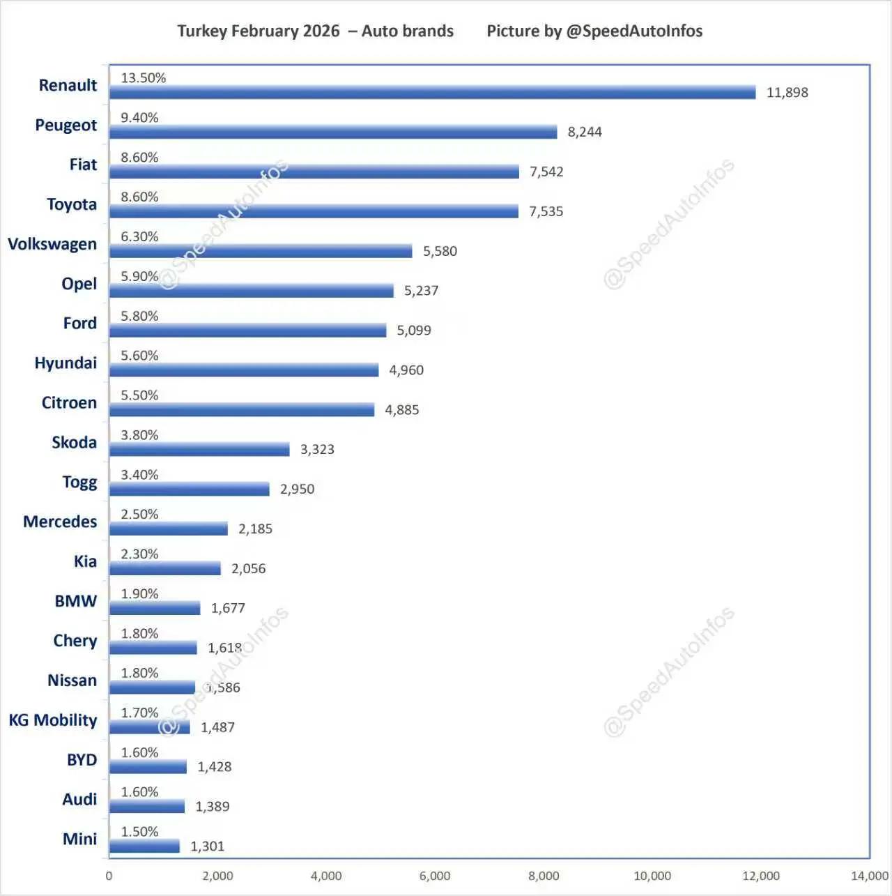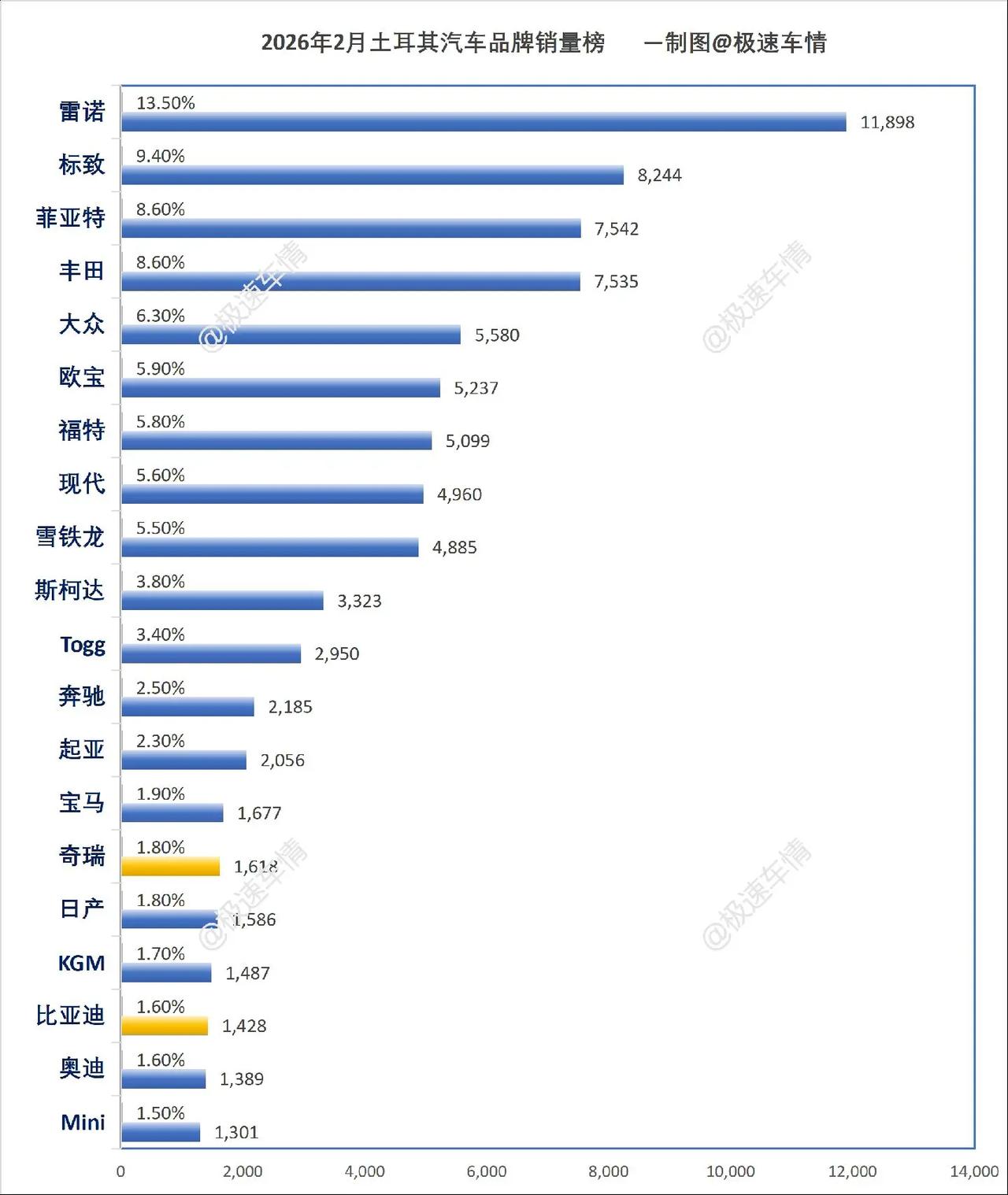 2026年2月,土耳其汽车销量榜!2026年2月,土耳其汽车销量榜!比亚迪和奇瑞纷纷大跌!土鸡看我们中国汽车销量上来了,就开始各种作妖。针对性加重税,各种针对措施,就是为了让我们的车企去建厂,然后给他们无偿分享技术,给他们带去产业链!狗中哈士奇,国中土耳其!极速车情 土耳其 哈士奇 奇瑞