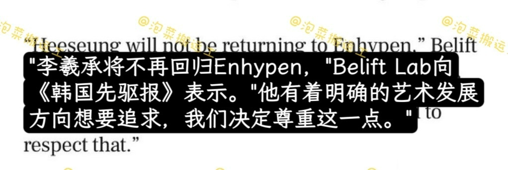 李羲承不会回归enhypen belift lab表示:“李羲承不会回归enhy