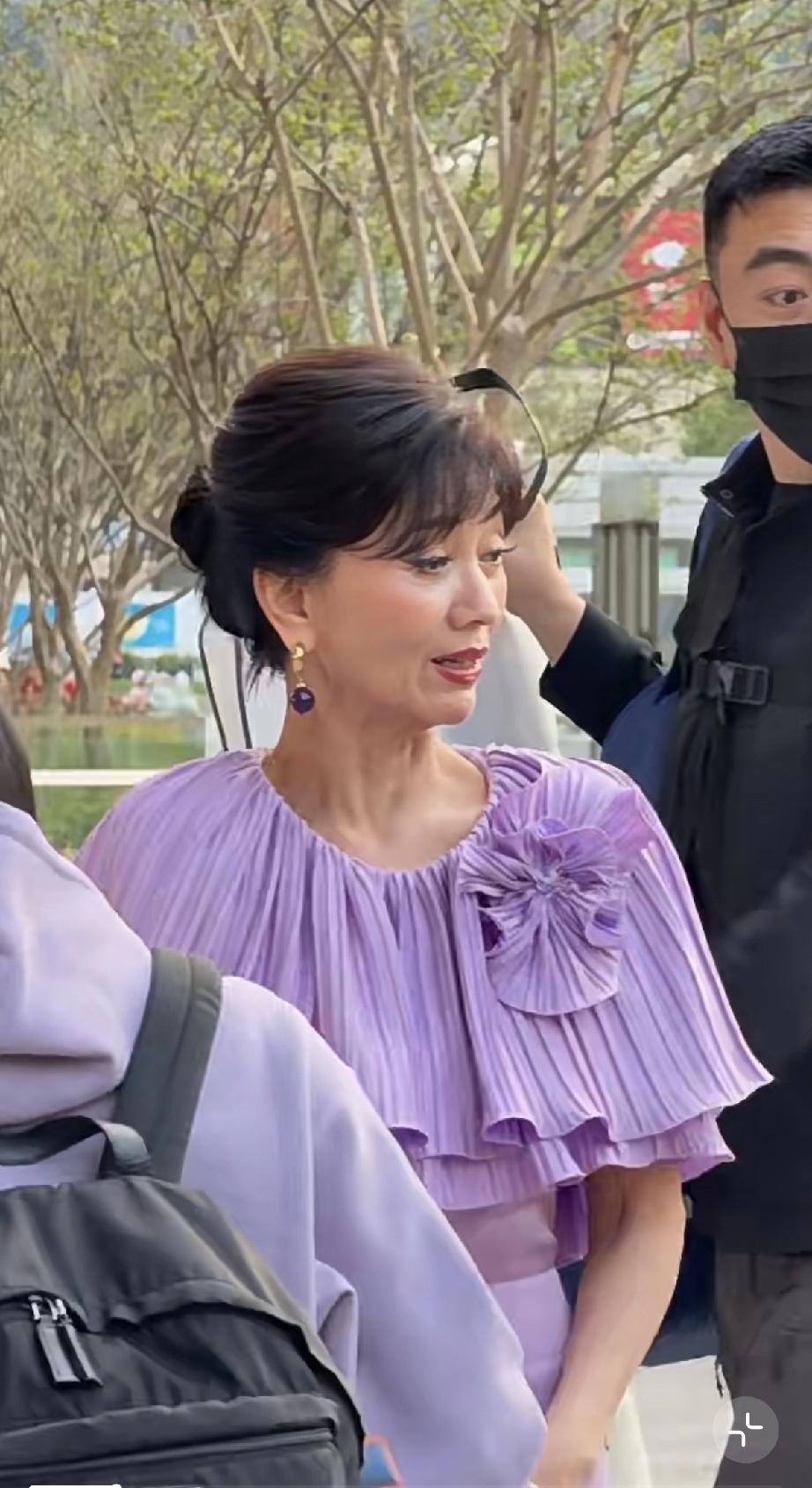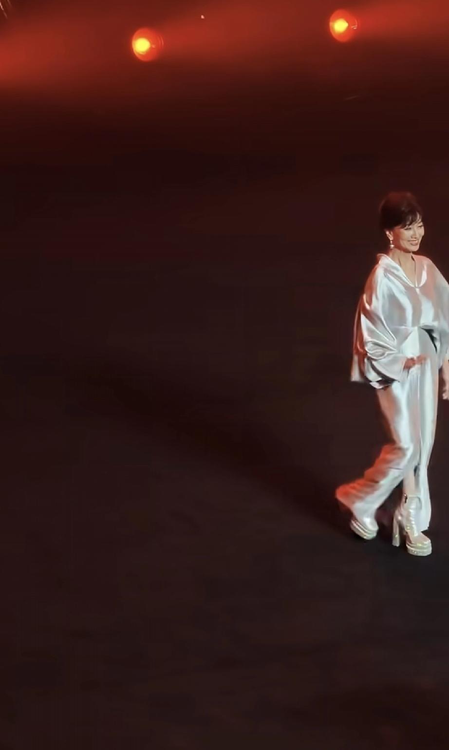 赵雅芝太难了,参加金鹏之夜穿20厘米的高跟鞋,还得浓妆艳抹,纯粹是干瘪老太太! 3月15日,赵雅芝空降深圳光明艺术中心参加金鹏之夜盛典活动。 她换了两套衣服,一身是紫色的,一身是灰色的,刚进来时穿紫色衣服,虽然妆容精致,但仔细看脸上的褶子好多,基本上满脸都是,颈纹也好深。 她在外面站着跟别人说话的时候,眼睛快睁不开了,眼袋很重,好像经常熬夜疲惫不堪。 近距离下,她手背青筋爆出,全身都是褶子,就像是一个化了浓妆的老太太,即使打扮时尚,也是个老太太,干巴巴地,皮肤完全没光泽了,水分流失严重。 赵雅芝是1953年的,今年73岁了,1973年入行,如今有50多年了。 她生过三个儿子,现在当了奶奶却没有退休,仍然不停地奔波,感觉好累,比普通人累多了。 这次到深圳参加金鹏之夜活动,赵雅芝更难的是穿了20厘米的高跟鞋,鞋跟又厚又高,走路摇摇晃晃,一点都不稳,网友生怕她摔倒,毕竟70多岁了,摔倒就麻烦了。 台上的赵雅芝努力呈现出一种好的状态,面带微笑拿着话筒讲话,但她给人的感觉就是快睡着了,精气神并不好,脸上也是皱皱巴巴。 就算她打扮很时尚,专门穿了礼服高跟鞋,仍有一种老太太的气息扑面而来,她真的很不容易,太拼了。