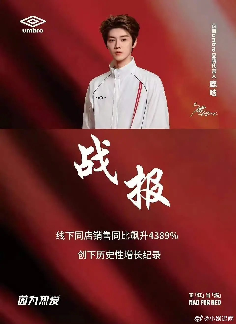 鹿晗新代言战报线下门店同比飙升百分之四千多,创下历史性增长纪录📈