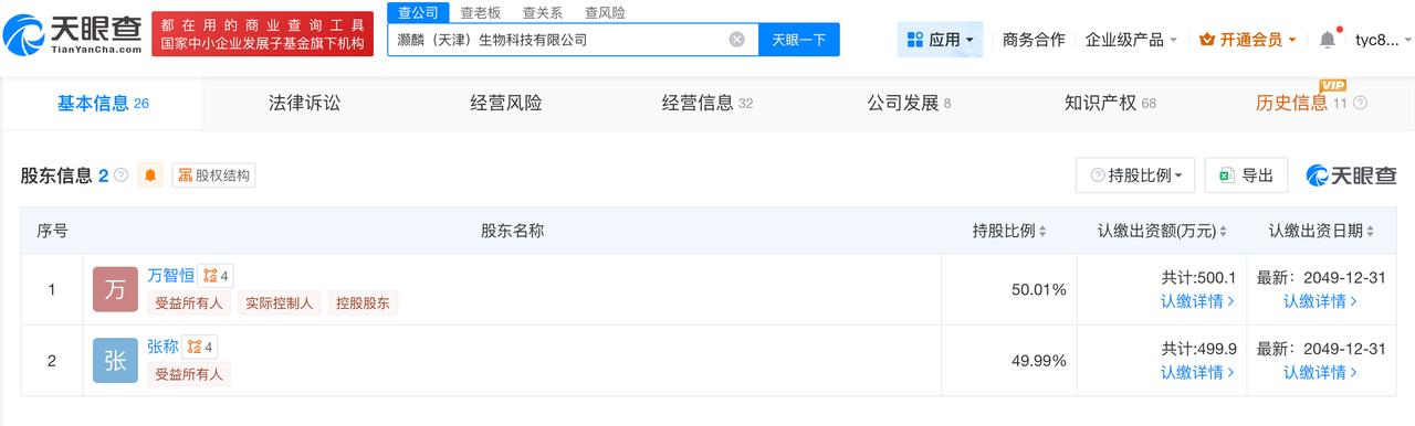 天眼查数据:灏麟生物曾中标社区卫生服务中心采购项目 央视315晚会曝光“万能”的外泌体问题,灏麟(天津)生物科技有限公司被点名。 天眼查App显示,灏麟(天津)生物科技有限公司成立于2019年6月,法定代表人为张称,注册资本1000万人民币,经营范围包括人体干细胞技术开发和应用、人体基因诊断与治疗技术开发、细胞技术研发和应用等,由万智恒、张称共同持股。招投标信息显示,该公司于去年9月中标“天津市河东区富民路街社区卫生服务中心”采购项目。 天眼查信息: