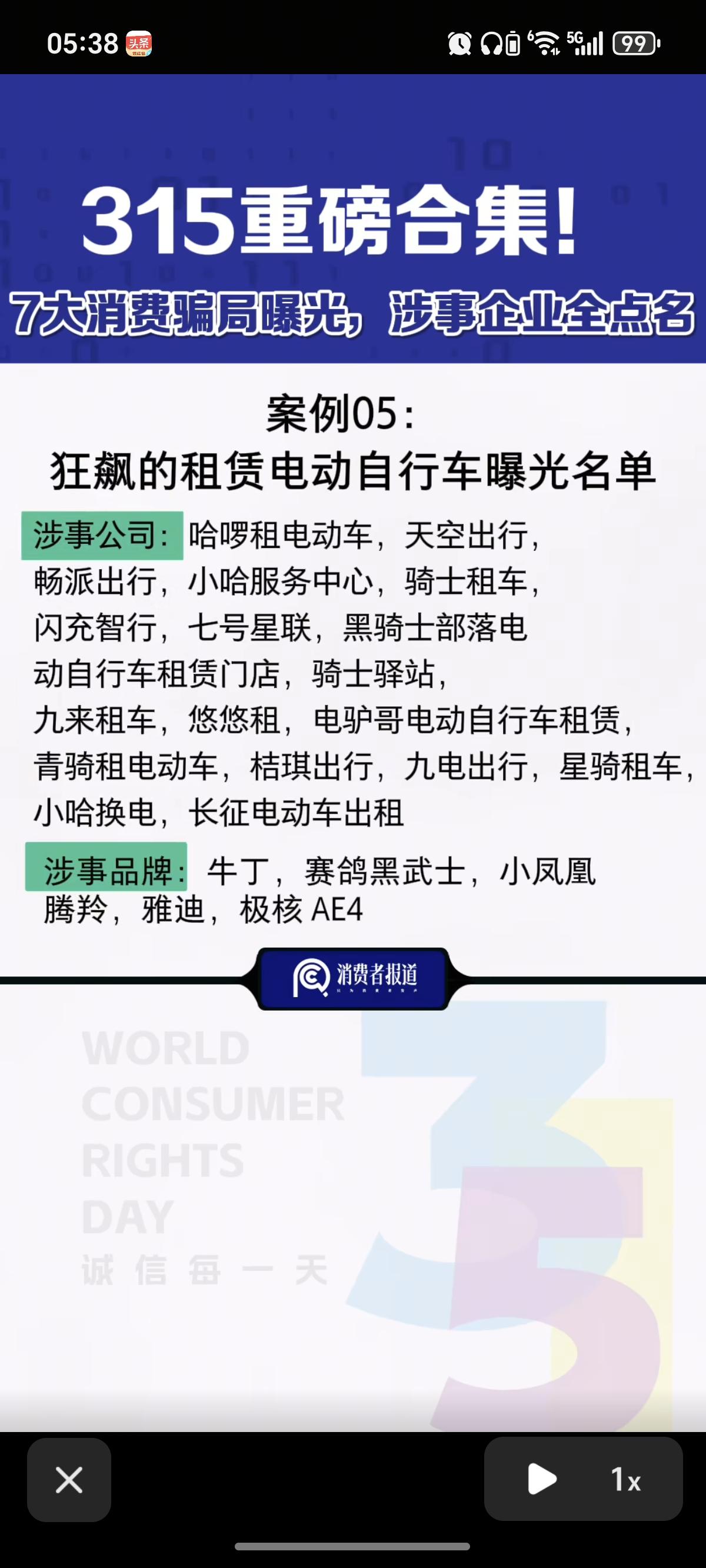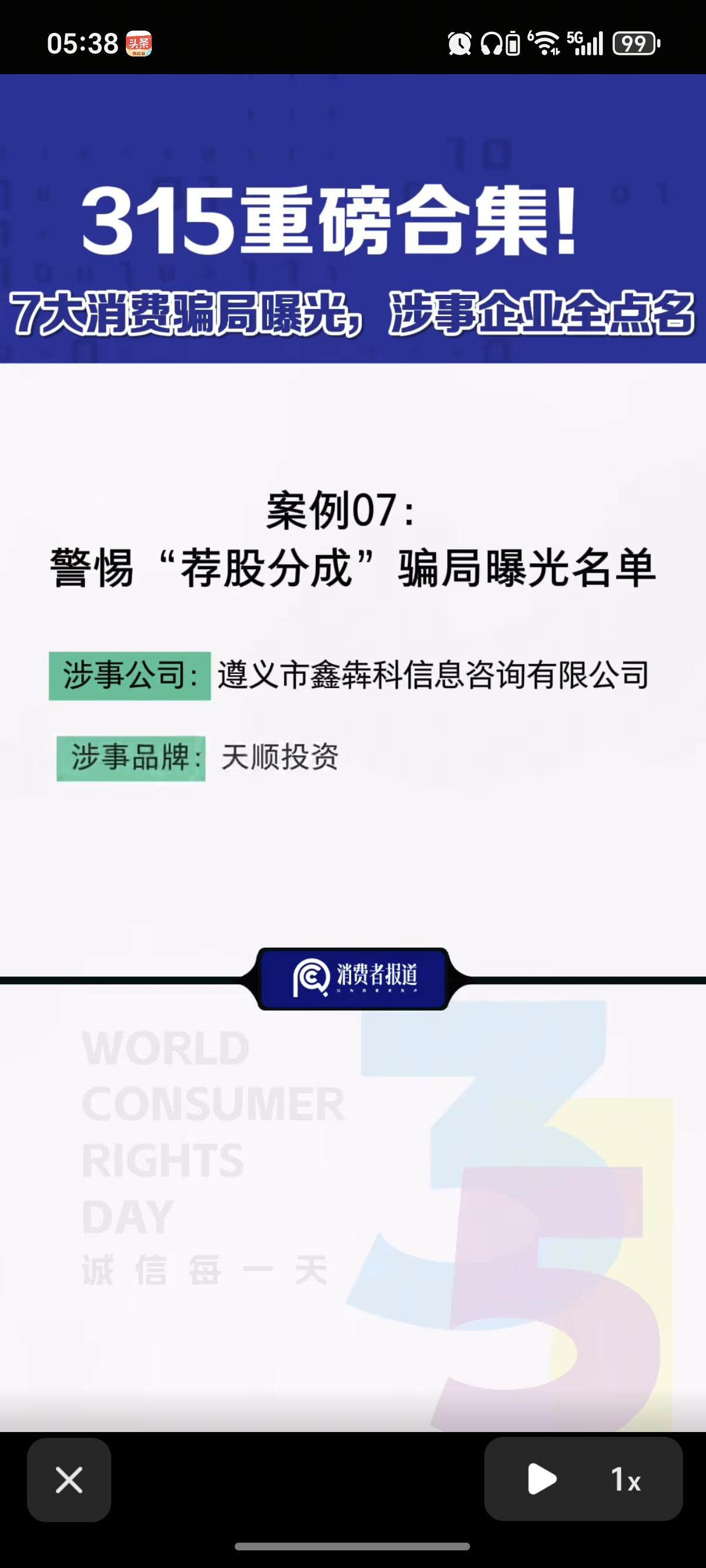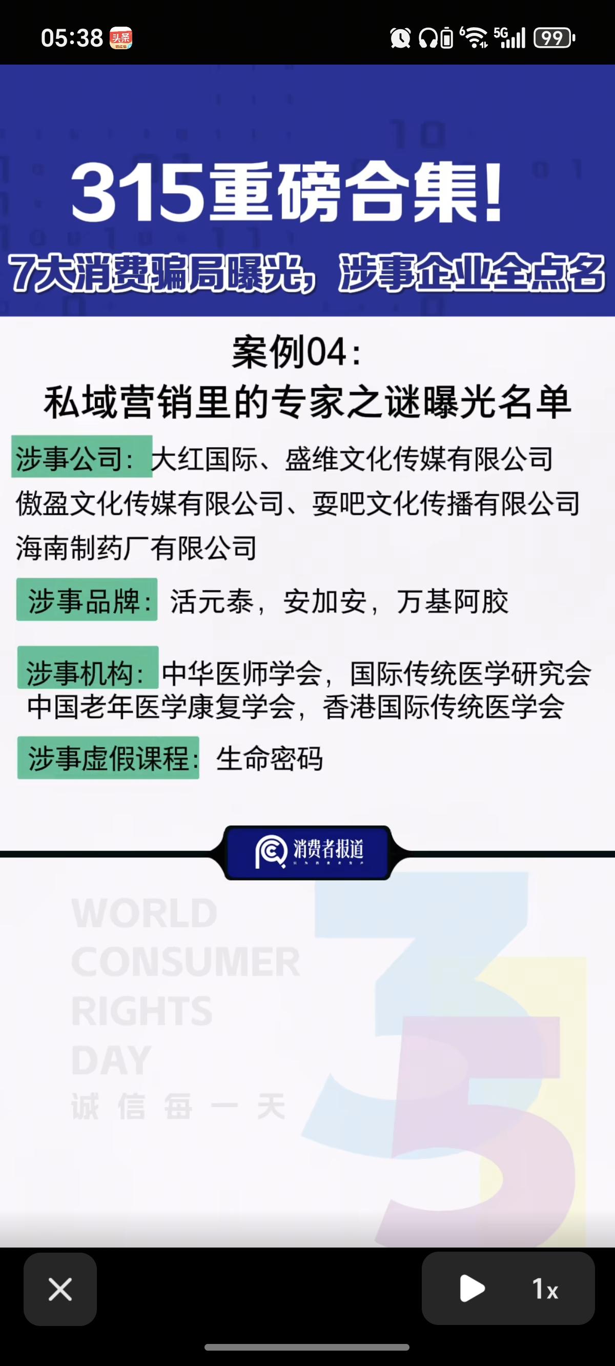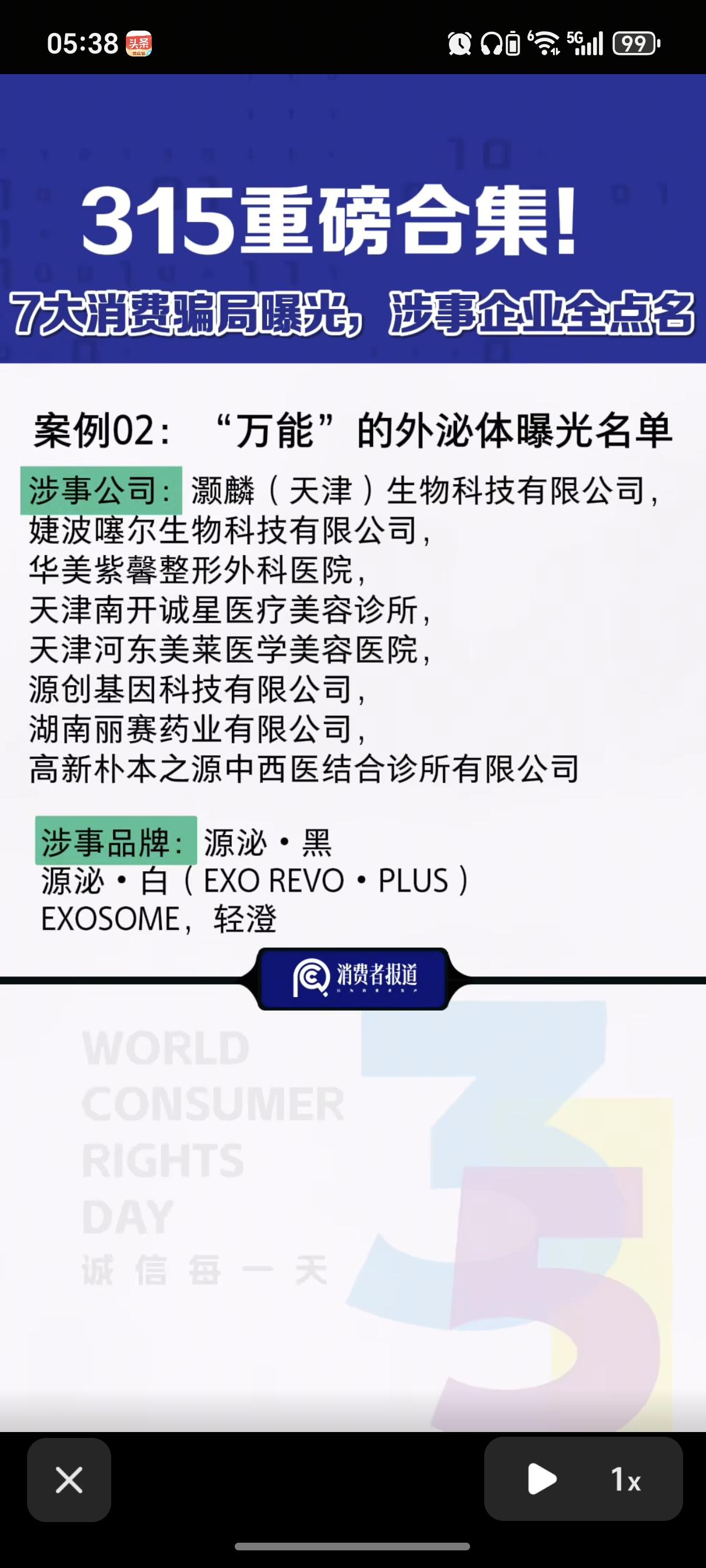 权威发布:315重磅合集! 7大消费骗局曝光!涉事企业全点名! 1.漂白得鸡爪 2.推荐股票 3.万能的外泌体,医美 4.增高骗局 5.营销专家骗局 6.人工智能AI 7.电动自行车