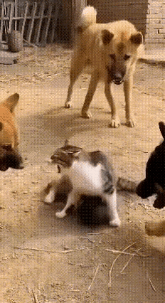 乖乖嘞!真看愣了! 几只狗子胆大包天,居然盯上刚生完娃的猫妈,围着要