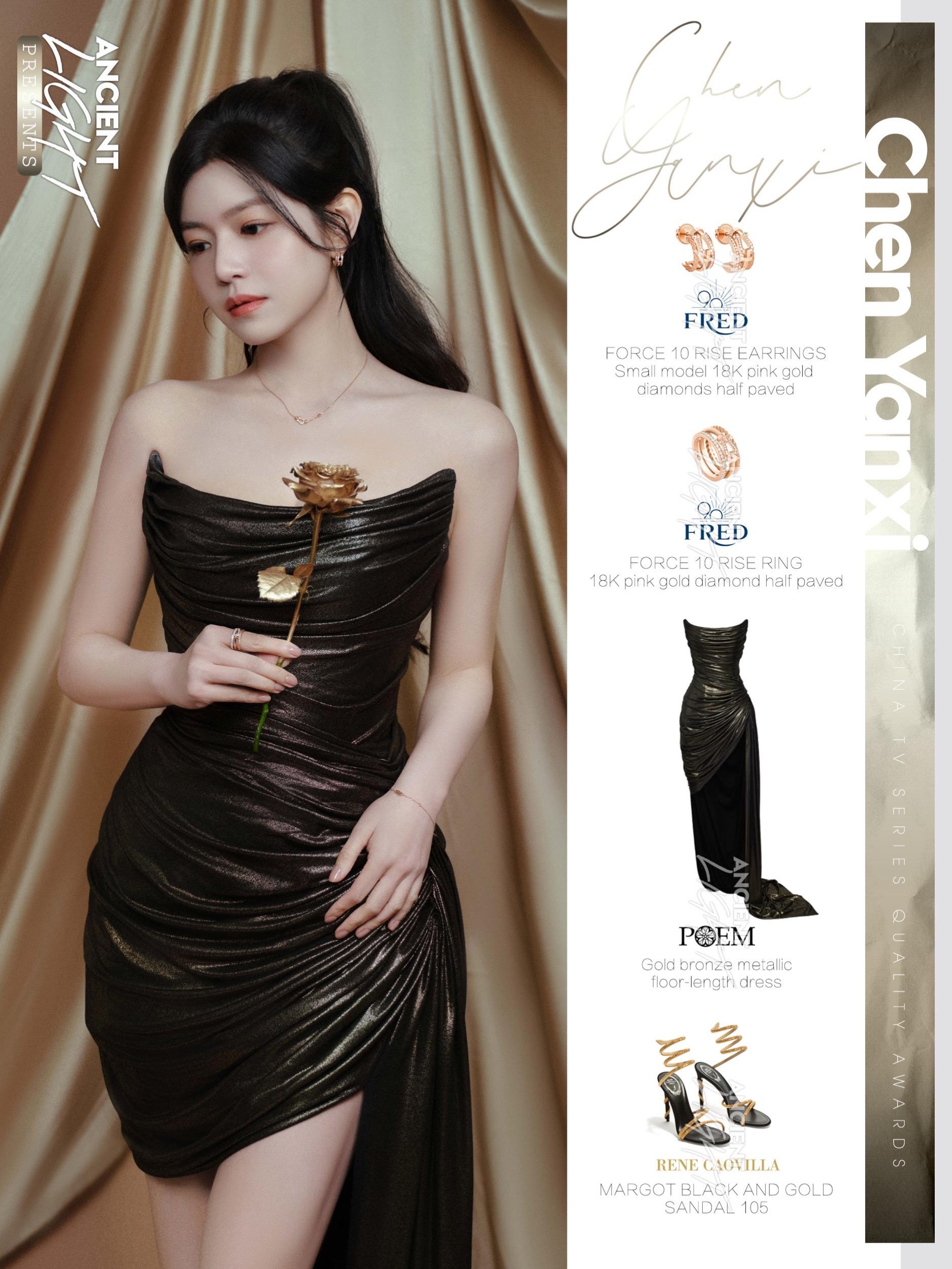 陈妍希|温柔有界,独成风景 陈妍希身着定制礼服,出席电视剧品质盛典斩获“年度突出演绎剧星”奖项。行走之间,光泽随步伐流转,气场沉稳而笃定。