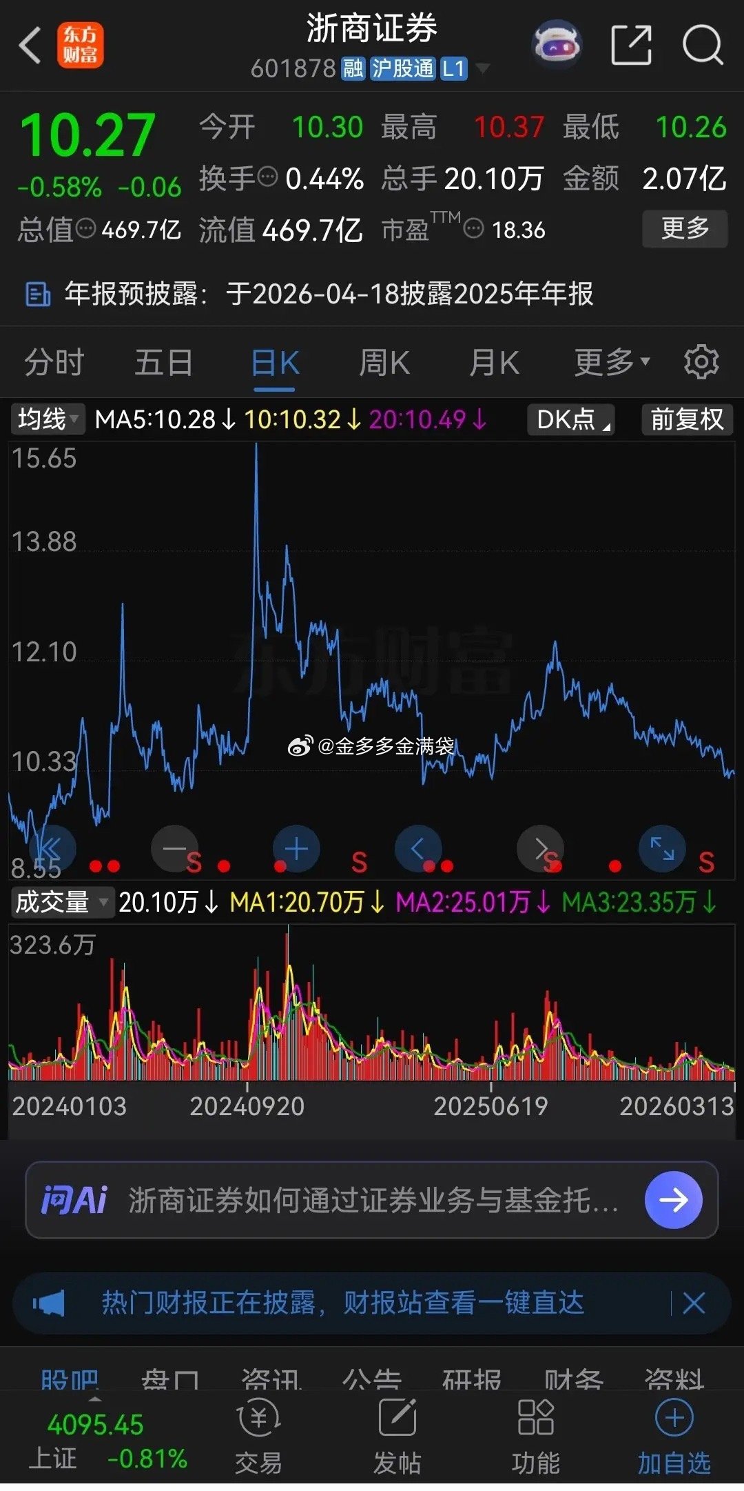 券商股最近一年来一直逆势大盘下跌,都说券商板块是“渣男”,而浙商证券可能是“渣男