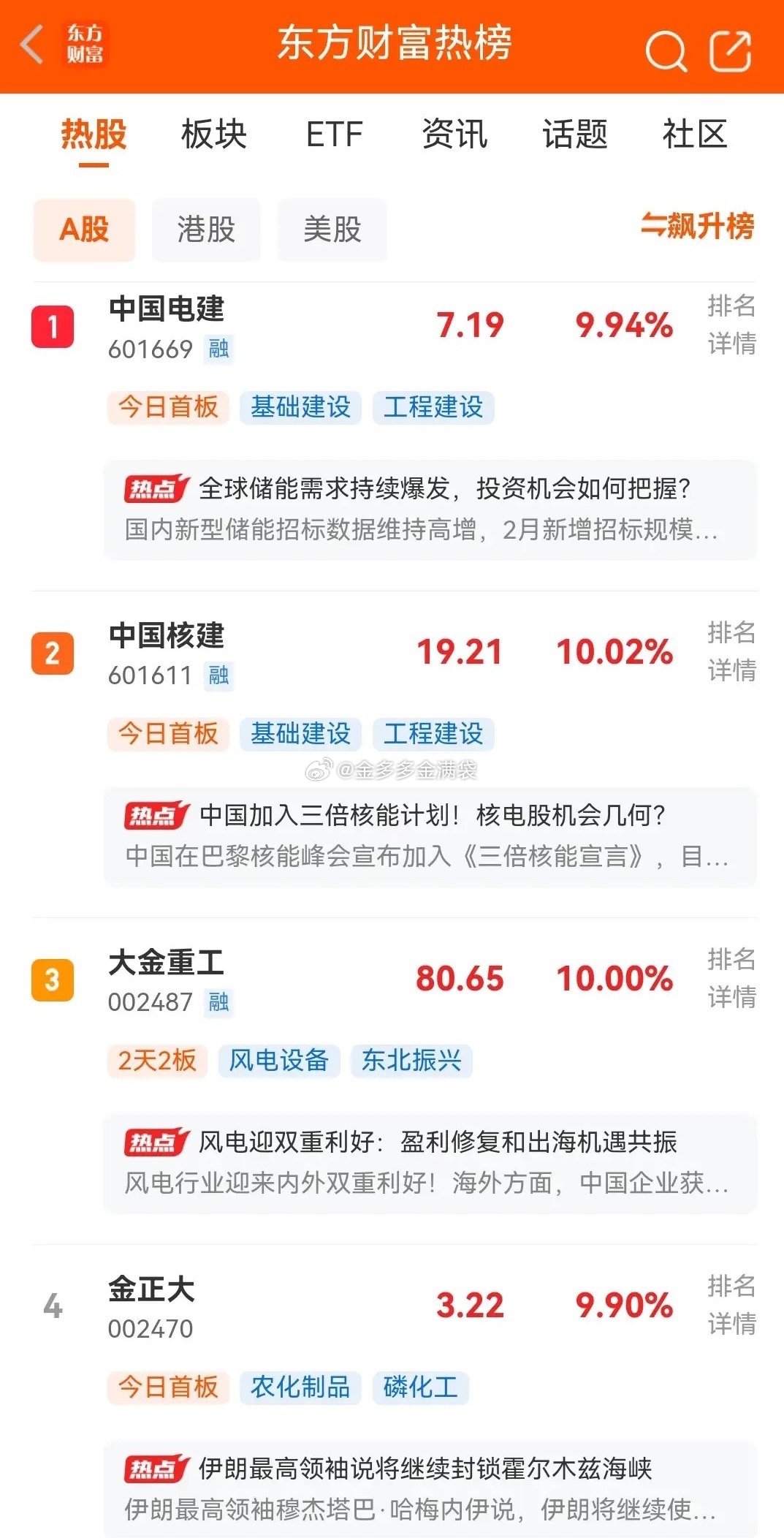 还有2个小时即将开盘,目前东财最新人气热榜排行前十名如下: