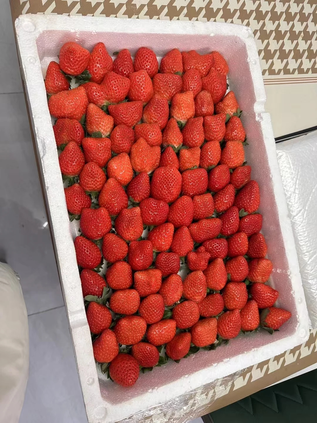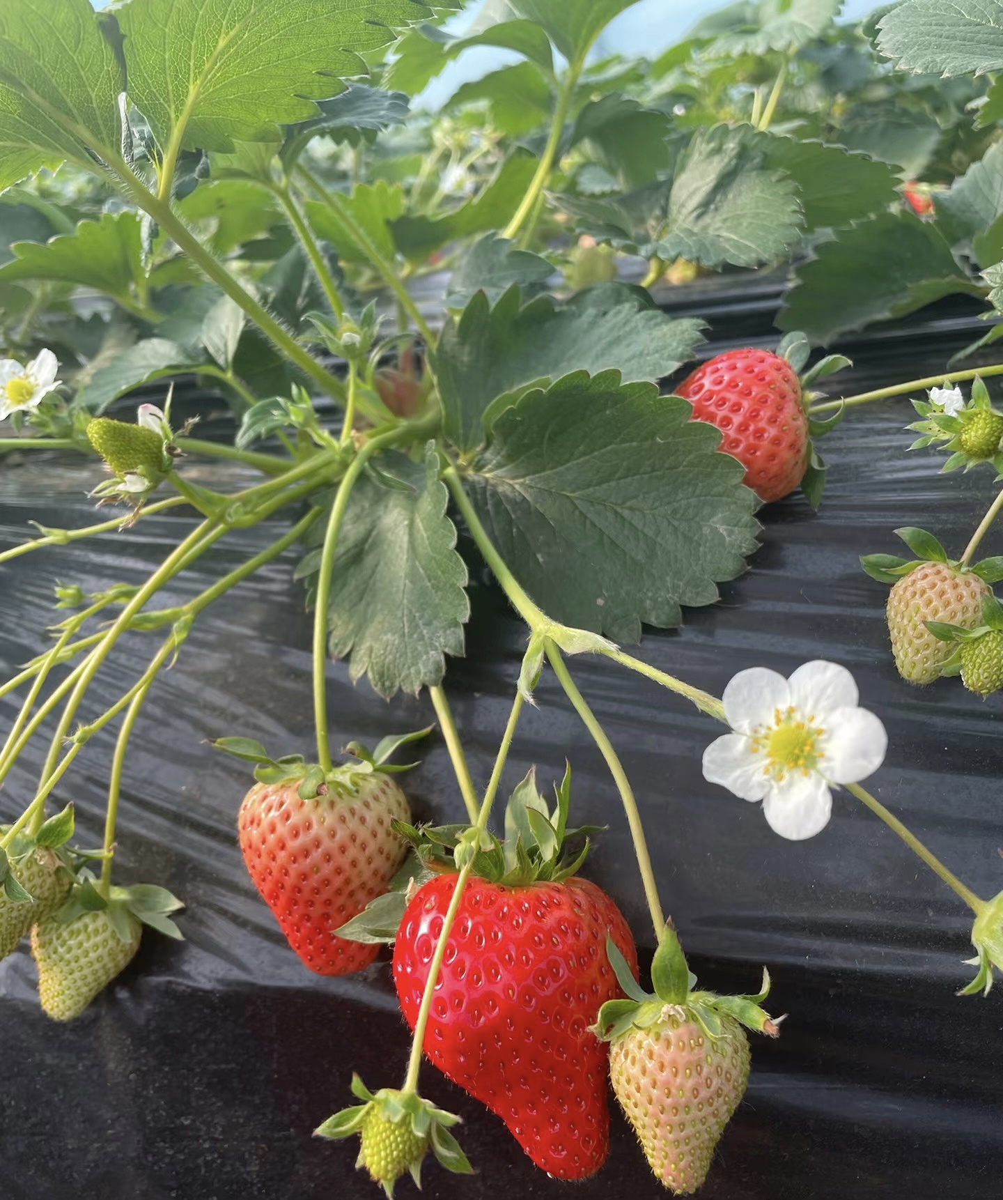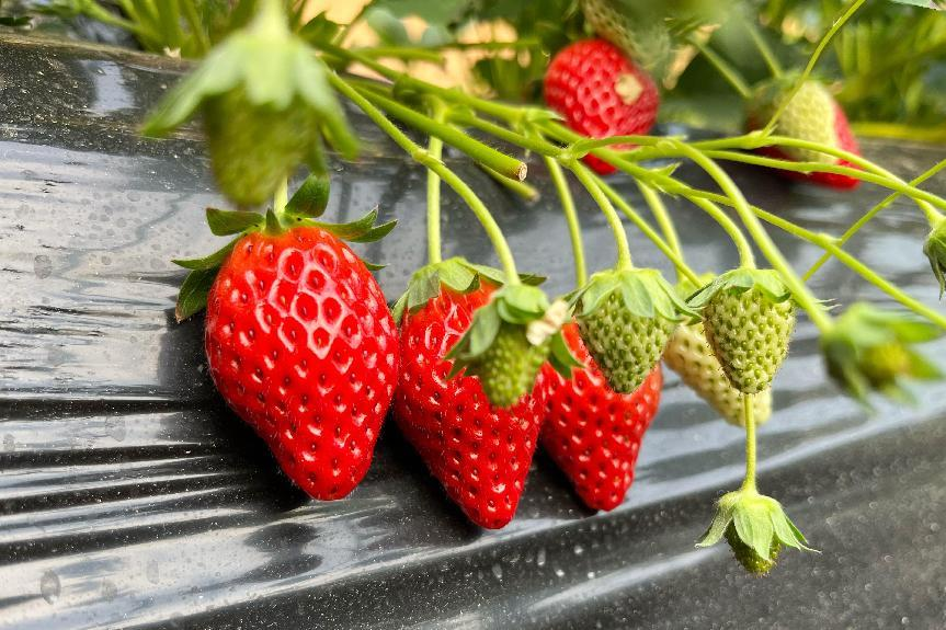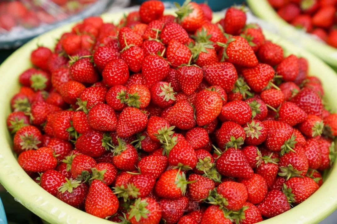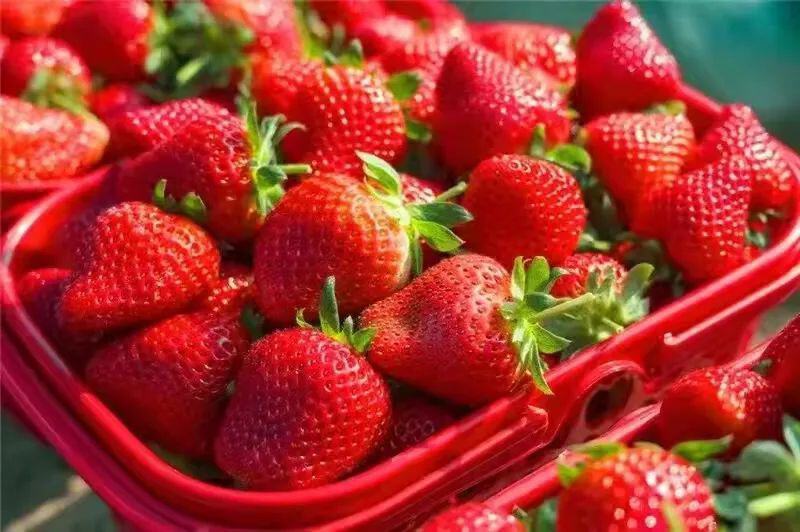 草莓的图片欣赏。现在虽然是开春了,但还是乍暖还寒啊。当前这个时候,最热销、最好吃的水果,当然是草莓了。 草莓,蔷薇科、草莓属植物的泛称。它是多年生草本。有匍匐枝。复叶,小叶三片,椭圆形。聚伞花序,花白色或略带红色。果实为红色浆果状,很好吃啊。 草莓的种类挺多的,有野草莓、麝香草莓、凤梨草莓等。其中凤梨草莓最常见,也是栽种最多的一种草莓。它的浆果是圆形或者心脏形,深红色,肉纯白,果下的萼片和苞片展开,是草莓中最常栽培的品种,俗称这种凤梨草莓为草莓。 过去我国北方在露天栽种的草莓,一般是在初夏开花,夏季成熟的。但现在的温室大棚很多,大棚技术普遍推广了。在塑料大棚里种草莓的地方和人比较多了,所以虽然现在还是春天早春,但是也有大量草莓上市销售啊。草莓的味道挺好啊,成熟的果实除了当水果生食以外,还可以制作果酱、果酒等。🍓🍓🍓