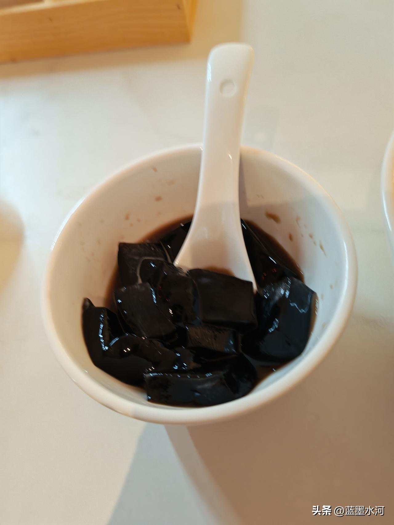 今天在梧州柏曼酒店吃早餐,看到有本地特产龟苓膏,我盛了一碗,放了一点糖水和牛奶味