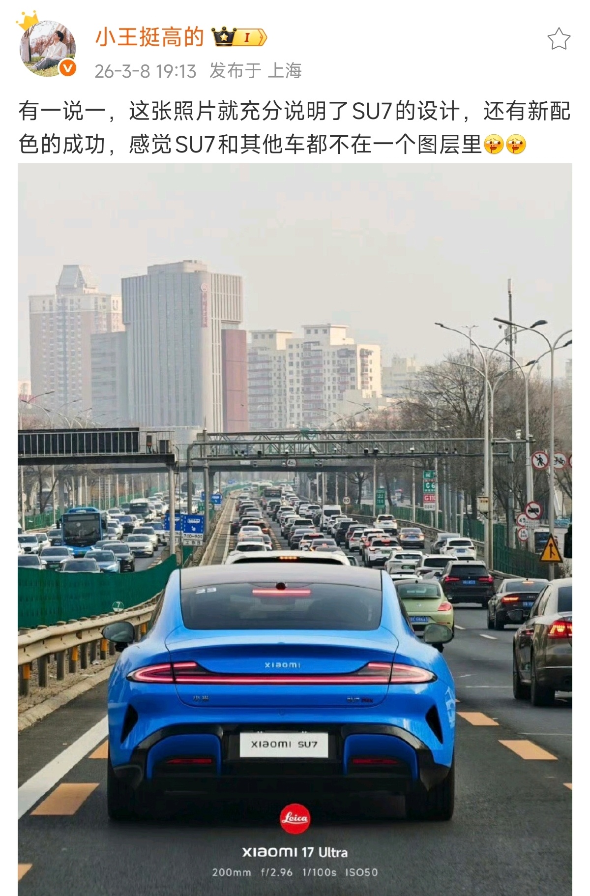 小米新SU7卡布里蓝特别版 看过实车了,卡布里蓝绝对是人群里的焦点,回头率完拉满。