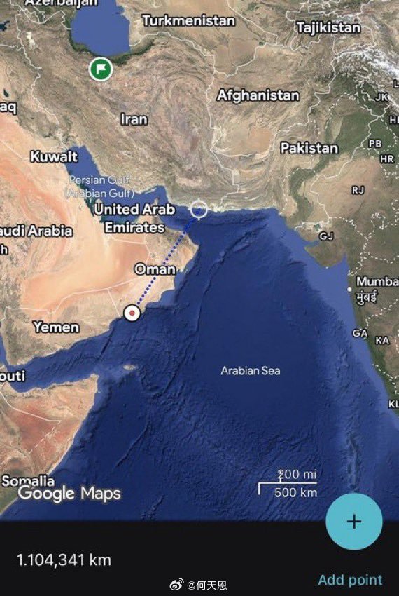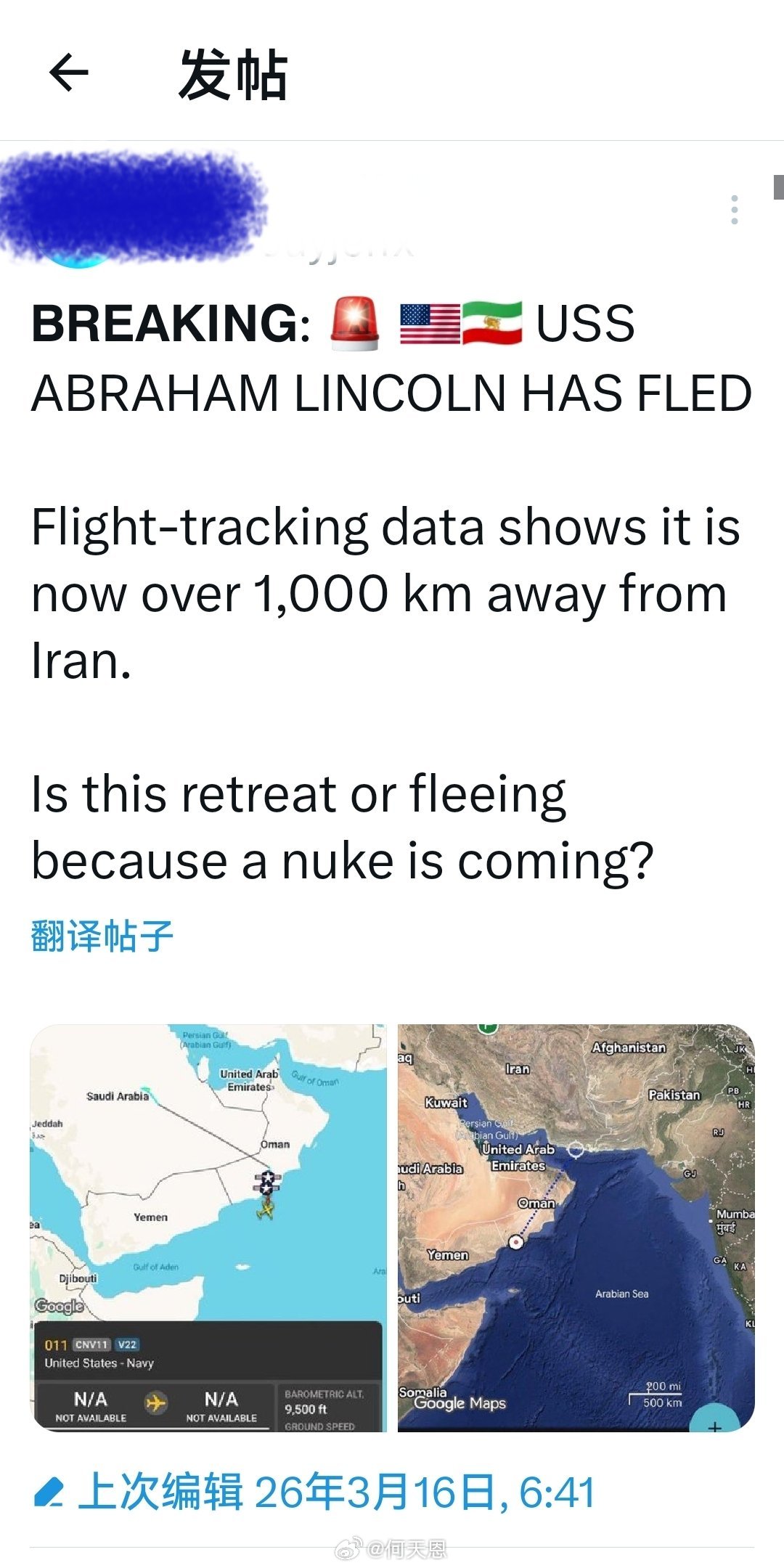 航行追踪数据显示,它现在距离伊朗已超过 1000 公里。这是撤离还是逃离?是因为即将有核武器来袭吗?