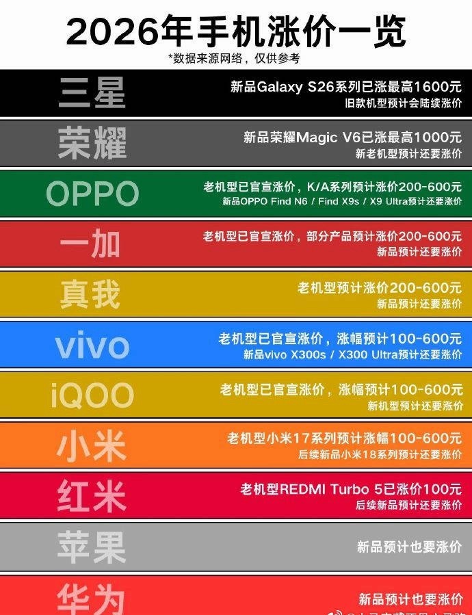 😱vivo/iQOO也官宣涨价了!3月18日10:00起正式调价!受全球半导体+存储成本疯涨影响,这次部分机型要涨价啦📈爆料涉及机型:✅vivo X300系列(X300/X300 Pro等旗舰)✅iQOO 15系列(iQOO 15/15 Ultra性能旗舰)✅还有vivo S系列、Y系列,iQOO Neo/Z系列等主流价位机型具体机型和涨幅以官方渠道为准手机圈这波涨价潮是真的来了…vivo