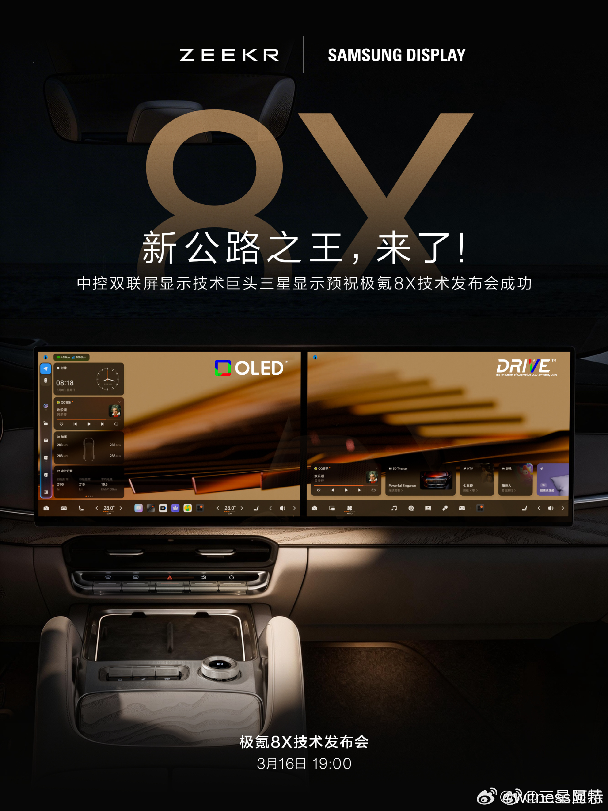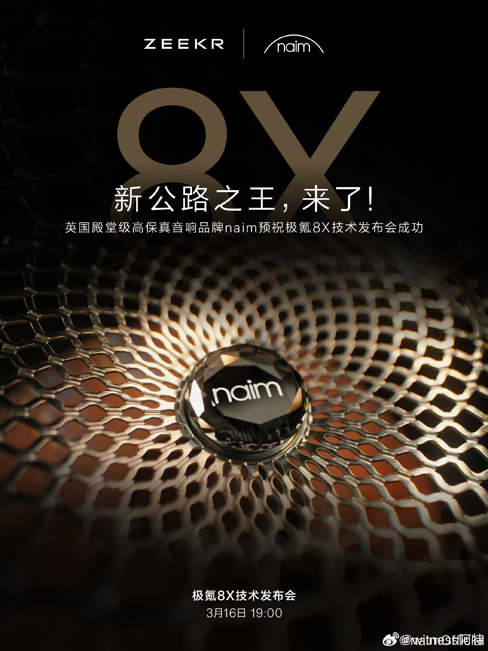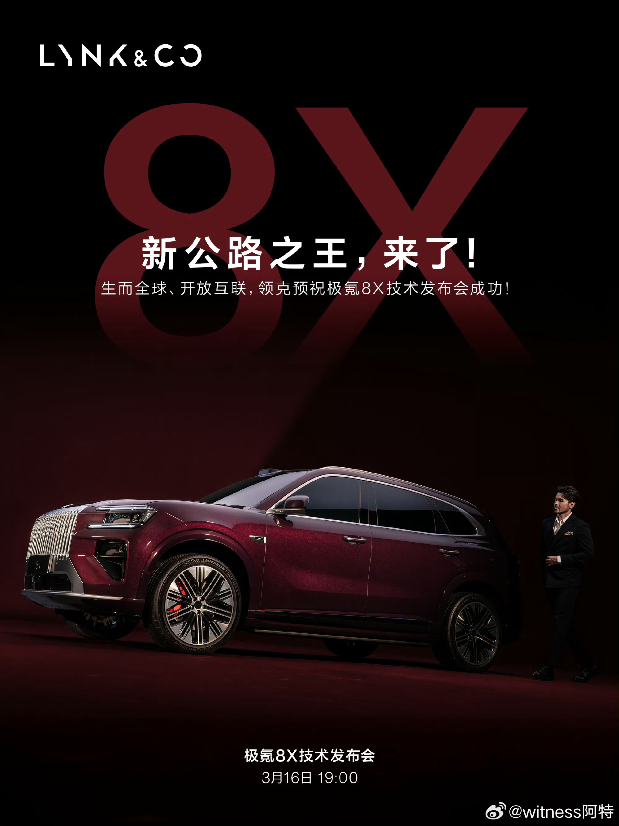 今晚19:00,新公路之王极氪8x即将技术发布!目前已经发微博致敬8x的有领克,孔辉,三星,以及naim。请大家补充极氪极氪8x新公路之王