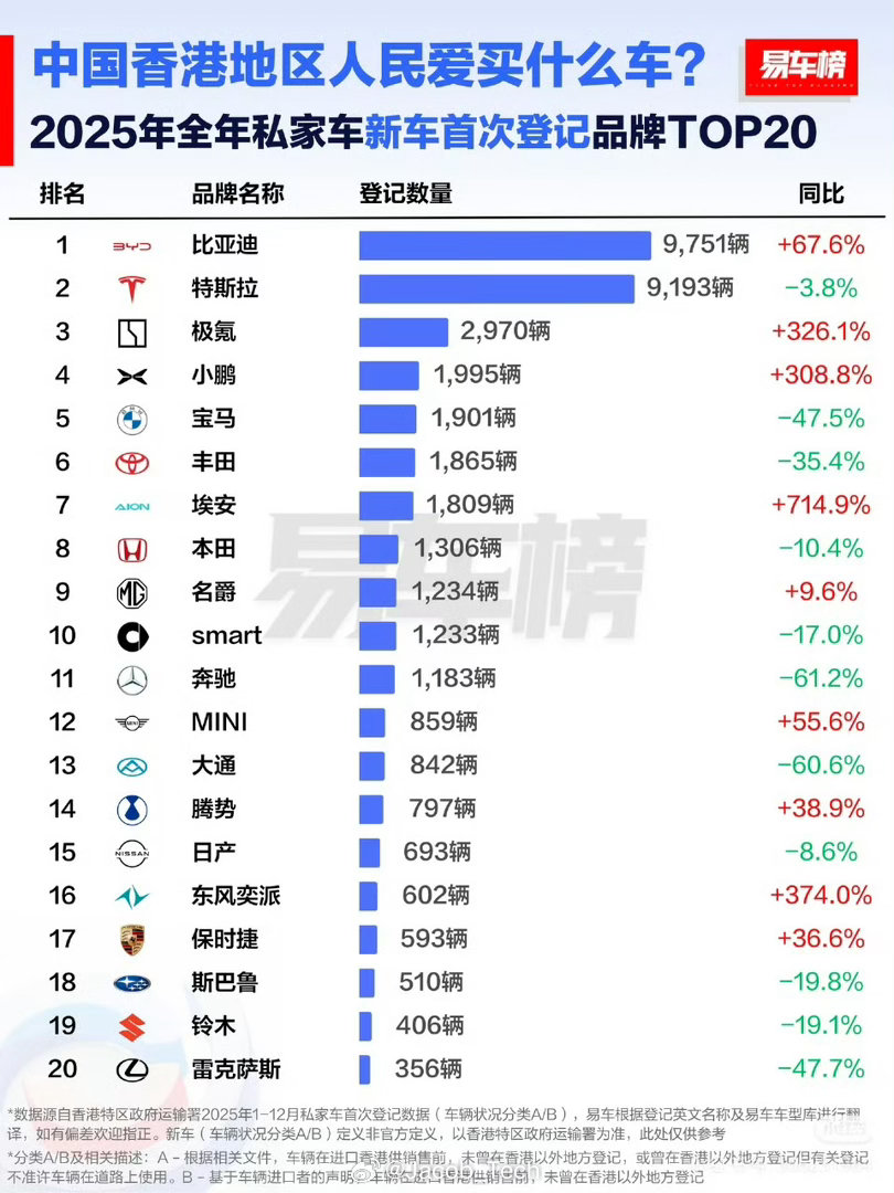 2025年香港车市迎来历史性突破,比亚迪以9751辆销量、同比大涨67.6%,力压特斯拉成为全品牌销量冠军,旗下海狮07EV以5680辆拿下年度最畅销车型,斩获双料冠军,2026年1月持续领跑
