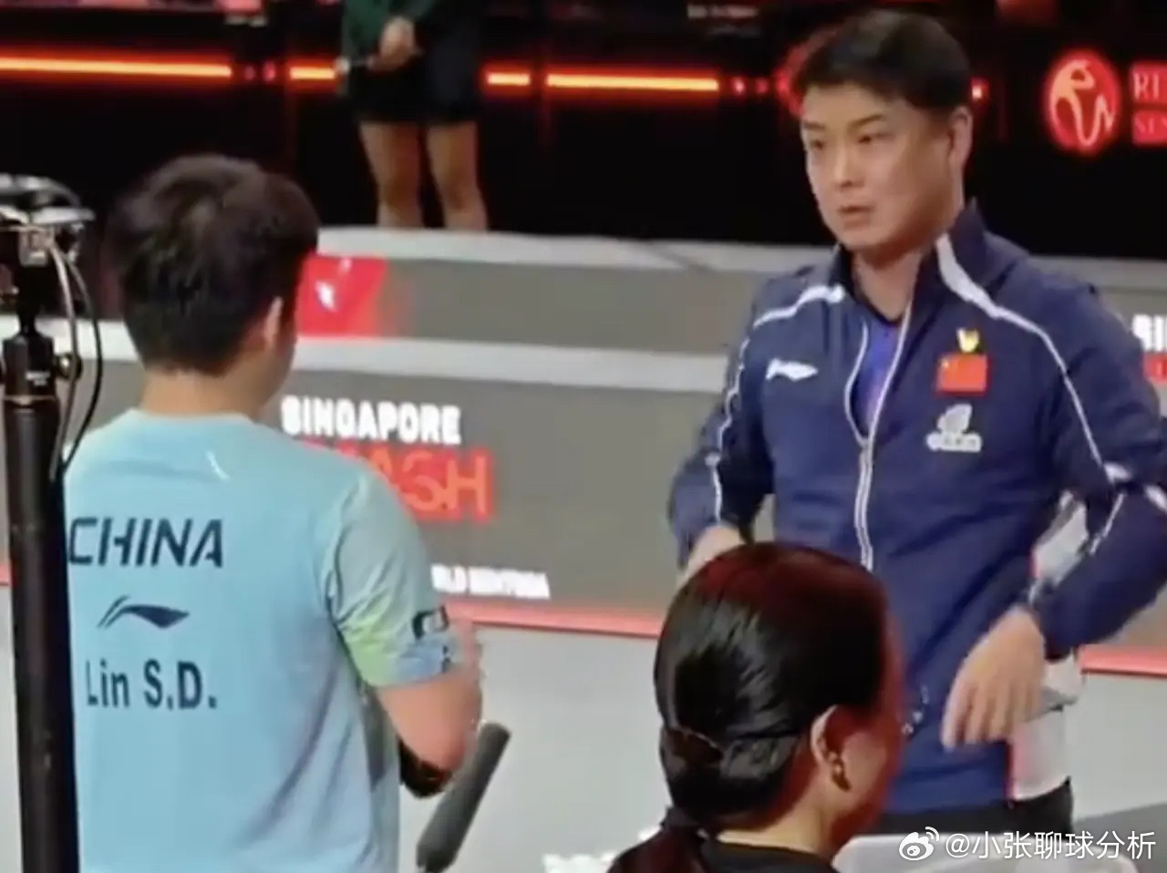 2月28日,林诗栋在新加坡的男单1/4决赛中2-4不敌小勒布伦,遭遇对后者的4连败。当时,教练王皓在场边很是生气。叫暂停的时候,王皓甚至爆粗,让林诗栋要对自己有信心、敢进攻。比赛结束后,王皓紧急在场边与林诗栋复盘,情绪很激动。
