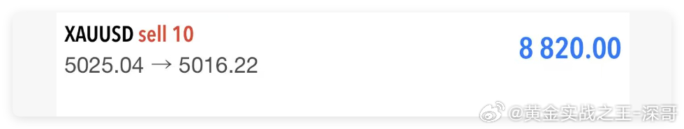 黄金5025空,抵达5015出局,获利100点