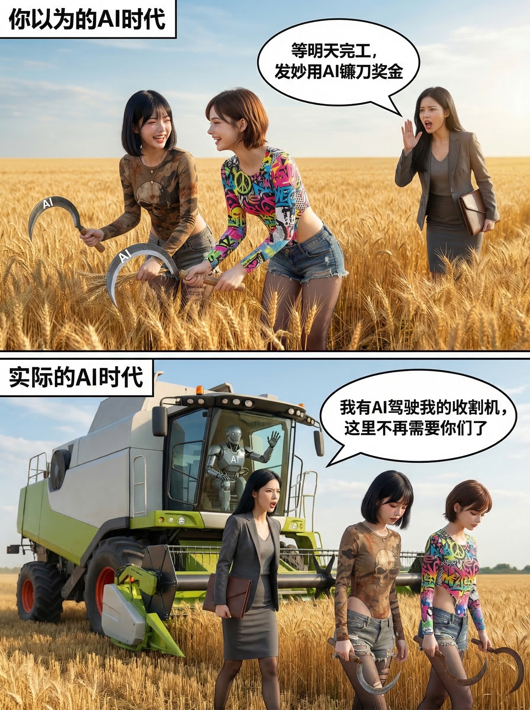 在风口行业的起步阶段,抢先学会+控制了新一代生产力工具的人,往往能在新时代里占据雇主身份,工头身份等主动地位。