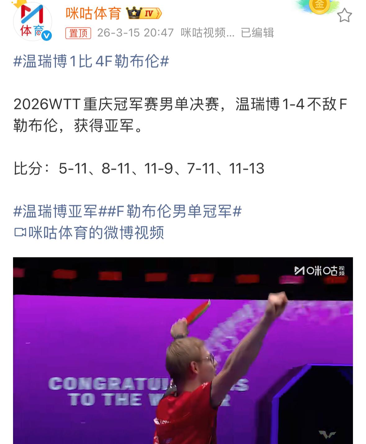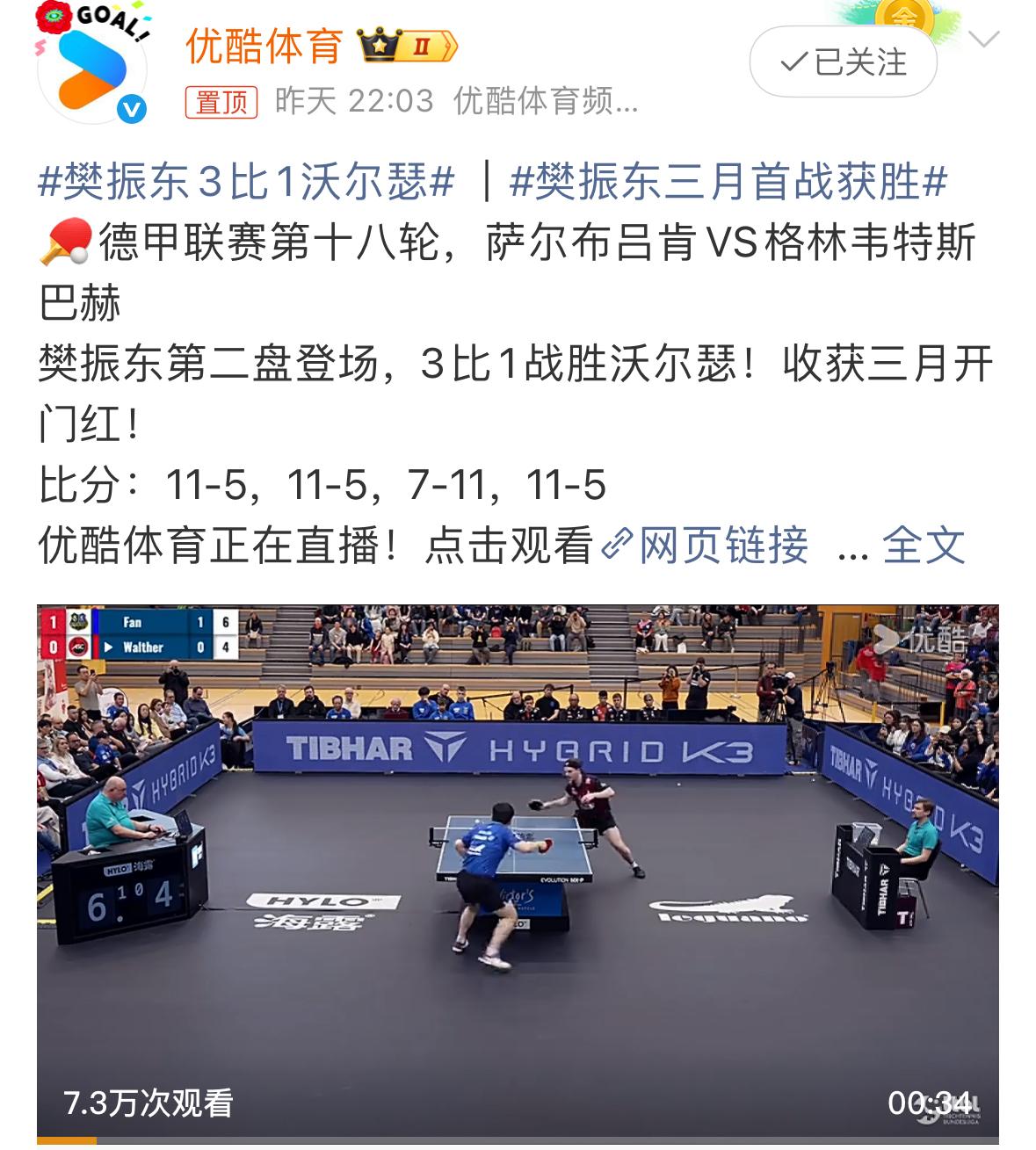 神奇的一夜, 一边是国乒丢冠, 另一边是樊振东马年开门红, 是巧合,还是天意? 昨晚,重庆大满贯决赛之夜,温瑞博1比4F勒布伦的最后一球,时间定格在20点47分。 同样是昨晚,2025-2026德甲联赛,第18轮 萨尔布吕肯(主场)vs格林韦特斯巴赫,樊振东 3-1 沃尔瑟最后一球,时间定格在22点03分。 前后不到两个小时的时间,当所有人准备用一夜的失落,来品尝国乒无缘冠军的苦涩之时,另一边的樊振东用马年的开门红,把所有人再度重温拉回到,本该属于我们的幸福与美好的日光中来。 或许是天意,担心国乒连丢两冠,带给大家的伤痛太大,在樊振东新年首战,驻法兰克福总领事不仅现场观战樊振东马年开门红,更是在赛后与樊振东合影热聊,将千里以外的温情与荣耀,送到重庆冠军赛决赛之夜中,被苦涩与不甘包围的国迷心中。 樊振东用胜利的荣耀与友谊大使传递的美好,为所有国迷及时疗伤,送来抚慰与希望,令人感动,温暖人心。 这究竟是天意,还是仅仅只是巧合?答案我们不得而知,但我们可以肯定的是,昨晚那种“失而复得”的感觉,真真切切的,带给我们满满的温情与幸福的感动… 谢谢你,小胖! 国乒无缘男女冠军