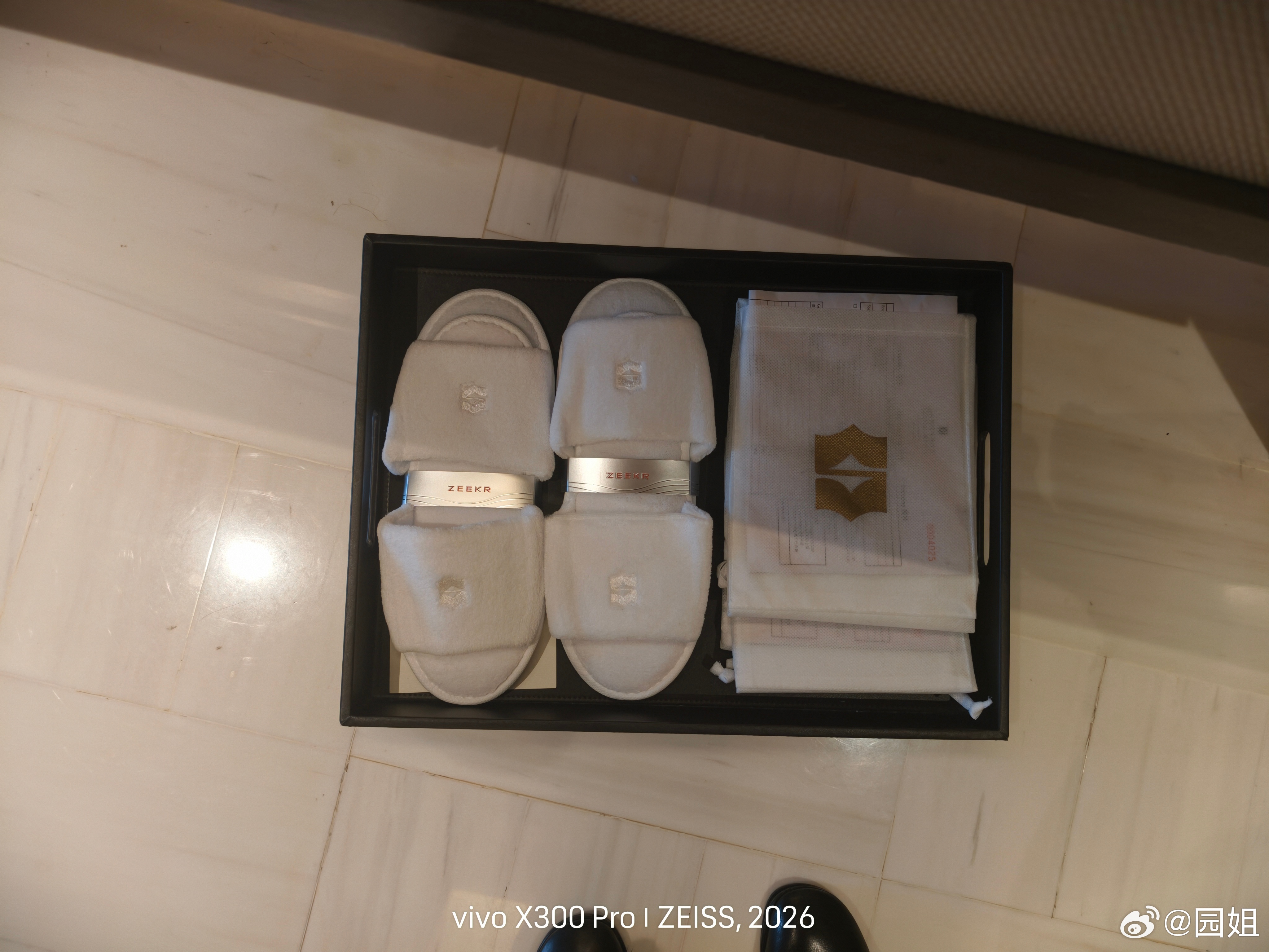 终于抵达了上海,晚上去参加极氪8X技术发布会。极氪今天不仅定制了水,还有定制的拖鞋绑带也是用心了