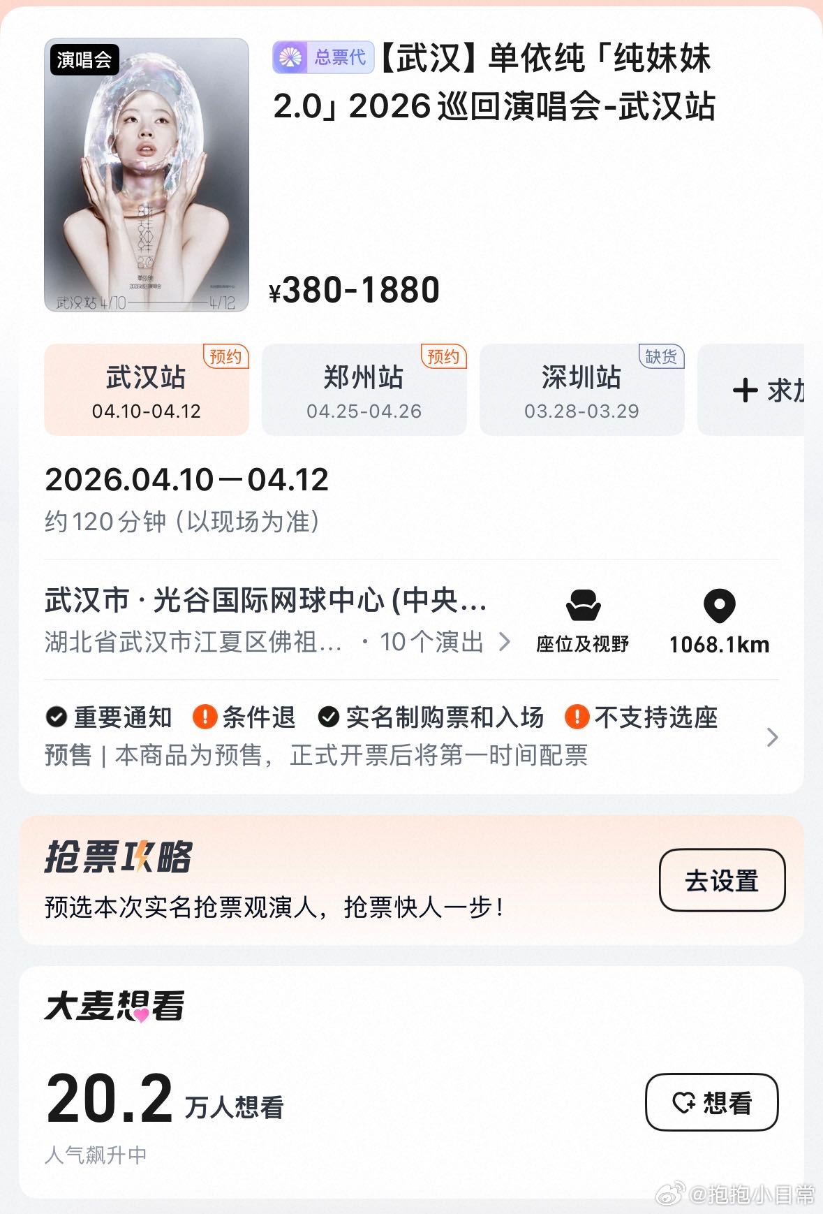 单依纯抢票 单依纯巡演一路从深圳火到武汉,郑州还没开票就已经被蹲守,实力女声的