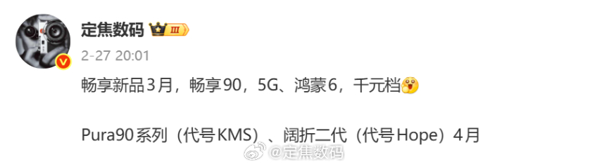 目前官宣了 畅享90 Pro Max、畅享90 Plus。除了8K+大电池,麒麟8系芯片,鸿蒙6系统之外,还是畅享系4G全面切5G的机型。