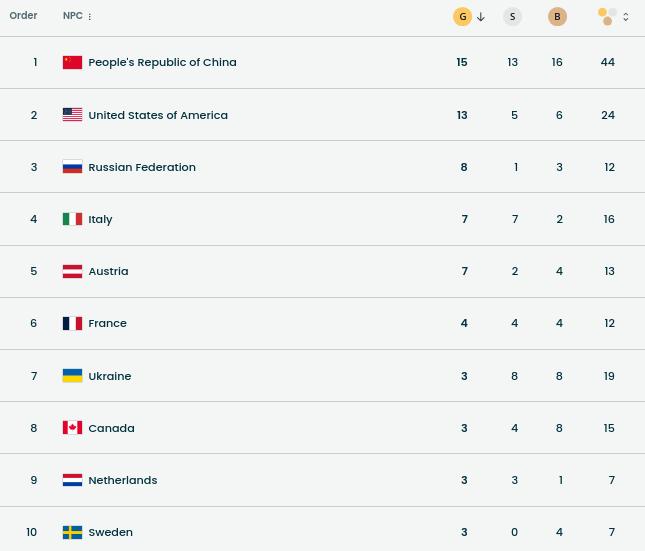 中国拿到残冬奥会4榜第一,美国也不赖,竟然还有俄罗斯。 北京时间3月16日凌晨,米兰残冬奥会落幕。最终,中国以15金13银16铜44枚奖牌拿到了金牌榜、银牌榜、铜牌榜和奖牌榜等4榜第一名。 为什么说得这么啰嗦?因为按照惯例,如果美国队任何一个榜的榜首,他们会以那个榜为标准排名。 中国是连续两届冬残奥会蝉联第一名。但这次,美国队值得表扬,他们以13金5银6铜24枚奖牌拿到了金牌榜和奖牌榜的第二名,是2018年索契残冬奥会以来的最好成绩。但美国队没有拿到银牌榜和铜牌榜的第二名。 中国的夺冠项目中,这次拿到了冬季两届的8枚金牌和冰壶混双的金牌,取得突破。 第3至第10名分别是俄罗斯、意大利、奥地利、法国、乌克兰、加拿大、荷兰、瑞典。您没有看错,确实竟然有俄罗斯。世界残奥委会主席是巴西人,看来并没有被欧美控制。 其中,上届金牌榜亚军乌克兰在第一天就拿到了3金,坐到了金牌榜首位,但随后半个月时间再无一金进账,也是奇怪。