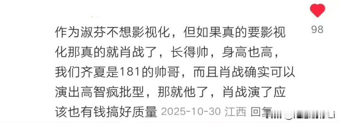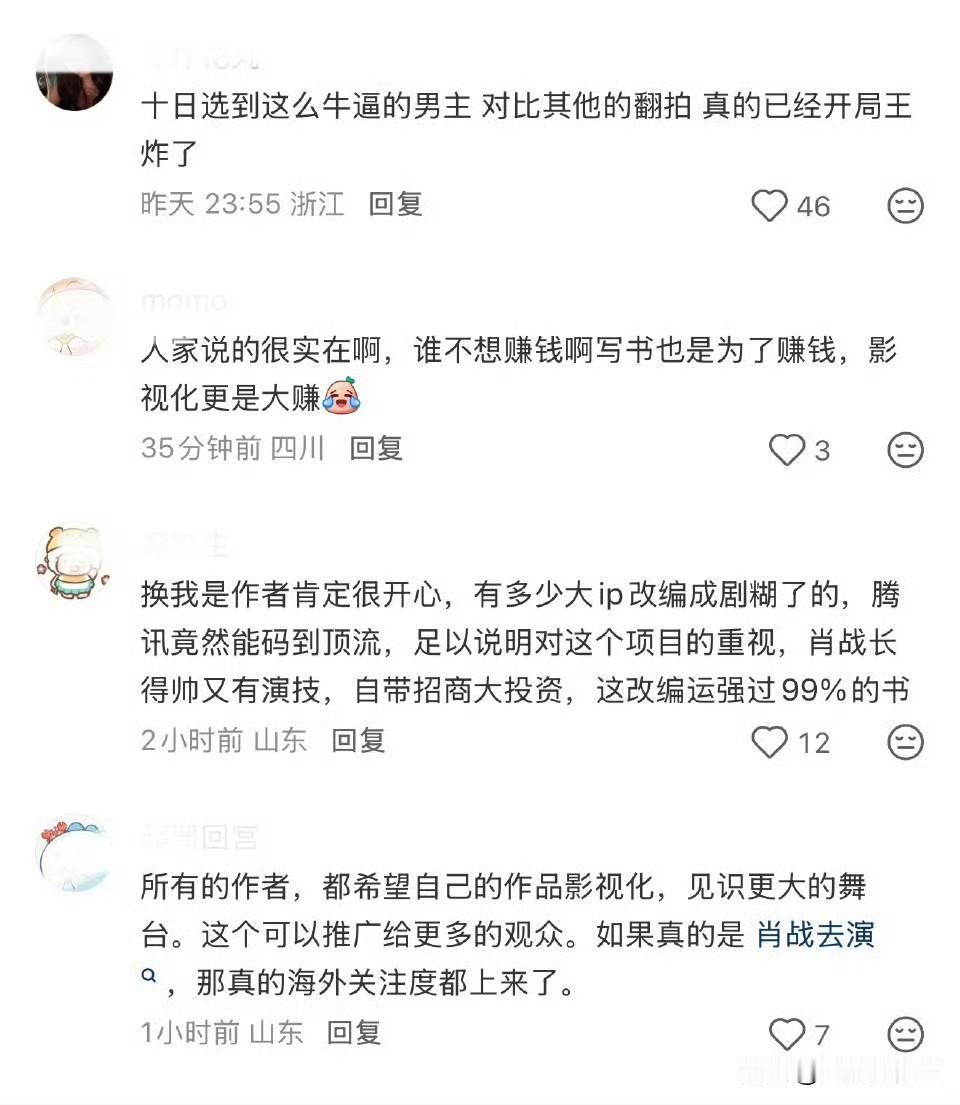 影视寒冬是针对些没实力的混子而言的,真正有实力的顶尖实力演员只会大制作影视剧不断。一个未确认的🍉,书粉和已经狂欢了,书粉大多是齐夏控,没有大男主齐夏就没有灵魂和脊梁,谁会看呀。大男主群像才是剧出彩的关键,所有的配角都因为齐夏而存在