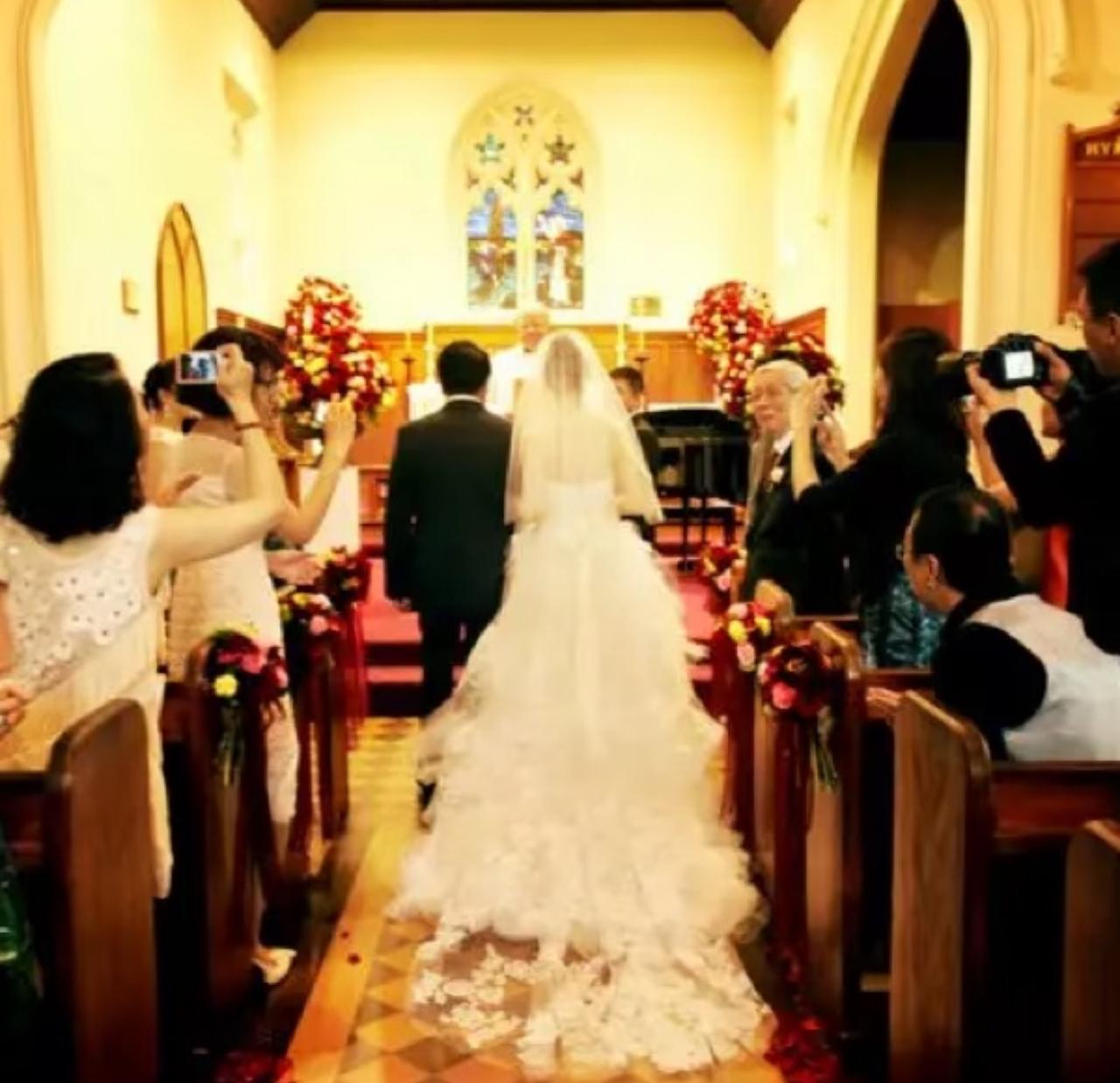 2012年,姚晨与曹郁在新西兰风光大婚,姚晨身穿的这件婚纱还是两人一起在纽约选的。 两人选的结婚地点也很用心,系当地赫赫有名的皇后镇圣彼得教堂,看上去浪漫又神圣。 当时穿着白纱的姚晨笑容明媚,一旁的曹郁也是满脸幸福,曹郁虽然个头不高,但两人站在一起画面十分和谐。 真的没想到这么浪漫的回忆已经成为了不可追回的过去。