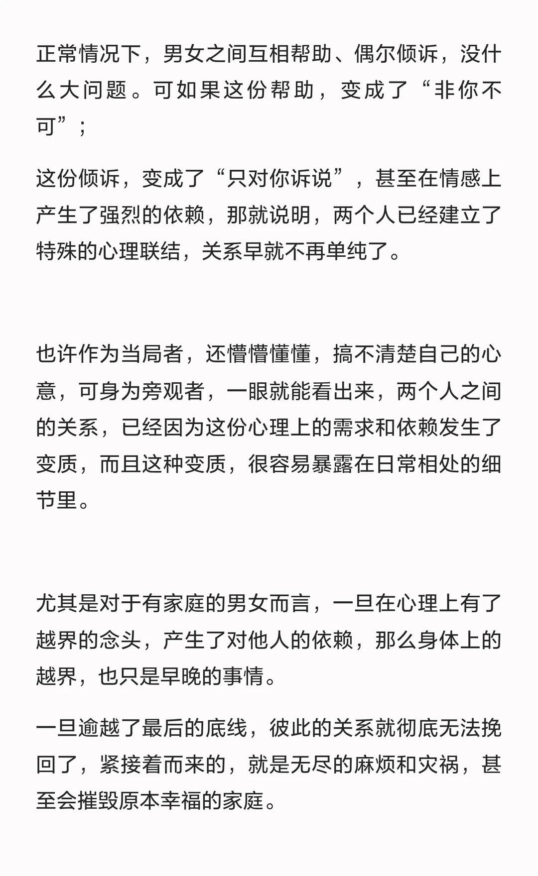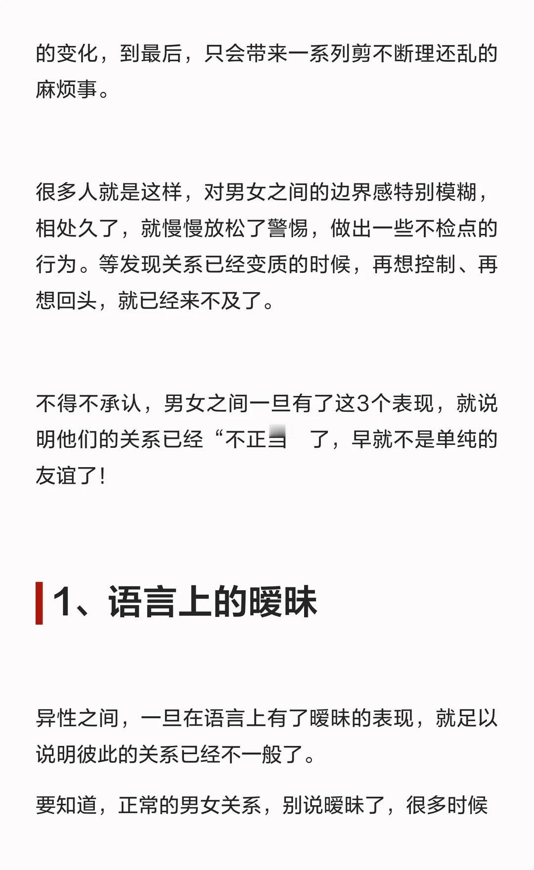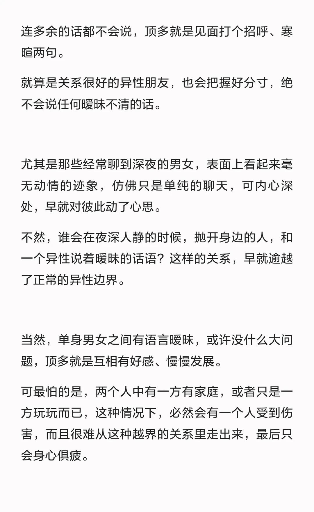 男女之间有了这3表现,就不再是纯友谊了 丈夫多次与第三者聊天,我虽未揭发,但内心深受伤害。 男女关系需保持边界,越界不仅伤害自己,还可能破坏家庭。 异性之间应注重距离,避免亲密行为,以免关系变质。 海外生活 旅游 移民 包包分享 投资理财 黄金 婚姻 婚姻修复