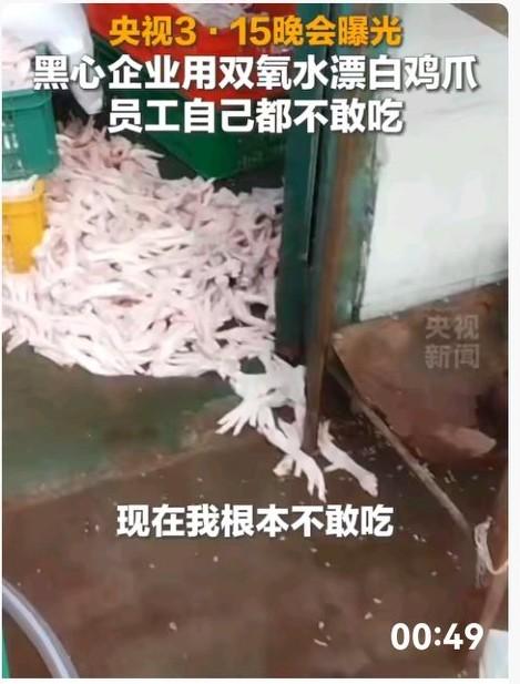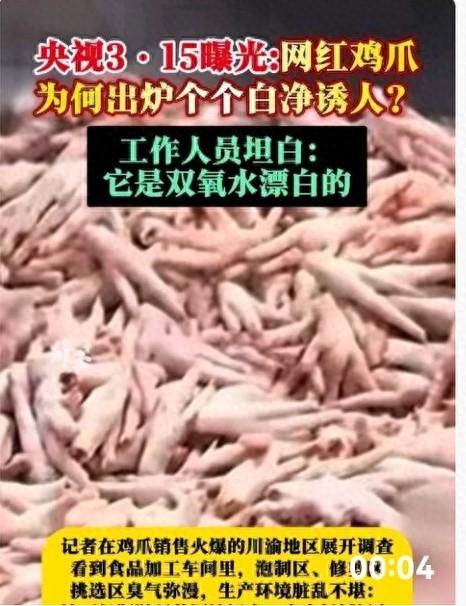 太可怕了!全网疯卖的网红凤爪,竟是用35%高浓度双氧水泡出来的“毒零食”!车间污水横流、工人无健康证上岗、变质鸡爪随意踩踏再回锅,生产者自己碰都不碰,却源源不断端上普通人的餐桌。 更寒心的是,315晚会直播现场,记者拨通涉事企业股东电话,对方竟一脸淡定、轻飘飘说出一句“谢谢关心”,这份毫无愧疚的冷漠,瞬间点燃全网怒火!这场用生命换暴利的恶行,早已突破食品安全底线,必须被彻底清算! 综合央视新闻等媒体报道,超过8%浓度的双氧水就属于危险化学品,而涉事企业直接用上35%工业级产品,这是国家法律严令禁止的食品添加行为。长期食用会灼伤消化道、损伤肝肾,过量更会危及生命。 可在利益面前,商家毫无底线:发黑发臭的变质原料,双氧水一泡立刻雪白鲜亮,再用重辣泡椒掩盖腐坏异味,摇身一变成为月销数万的网红零食,甚至还被头部直播间带货销售! 更可怕的是,这早已不是个别企业乱来,而是上下游串通、多地域联动、屡罚屡犯的行业潜规则。上游化工企业随意改标签、换品名,把危化品伪装成普通消毒液;中间企业疯狂采购,短短10个月就用掉5242桶;下游门店大肆售卖,一路绿灯流向市场。 重庆曾巧食品等企业更是“惯犯”,此前两次被罚依旧我行我素,罚款早已沦为他们造假的“保护费”。整改沦为走过场。 比毒凤爪更让人愤怒的,是整个链条的冷漠与嚣张。车间里污水横流、工人无健康证上岗,变质鸡爪随意踩踏再回锅,工人一句“我从来不吃”,道尽行业的良知泯灭。 而股东那句云淡风轻的“谢谢关心”,更是将这种漠视推向极致——面对记者的曝光,面对消费者被毒害的风险,他没有丝毫恐慌、没有半点愧疚,仿佛这场用健康换来的暴利,只是一件无关紧要的小事。这种态度,恰恰戳中了网友的痛点:企业违法在先,股东冷漠在后,监管若再不发力,谁来为百姓的健康买单? 工人一句“我从来不吃”,道尽了行业的冷漠与黑暗。他们明知有毒,却照常生产;企业明知违法,却顶风作案;链条上每个环节都在装聋作哑,最后买单的却是毫不知情的消费者。 食品安全从来不是小事,更不能只靠3·15曝光一次、整治一阵。鸡爪能漂白,良心永远漂不白;利润能造假,生命绝不能造假。愿3·15不只是一场晚会,而是一把始终悬在黑心商家头上的利剑,守住我们每一口吃进嘴里的安心与放心! 对于,涉事企业股东,一脸淡定、轻飘飘说出一句“谢谢关心”,咱们该如何回应他呢?