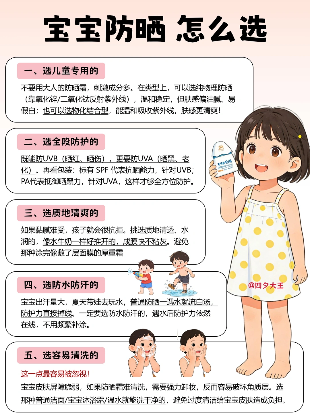 ✅ 选宝宝防晒霜,这5点一定要记牢: