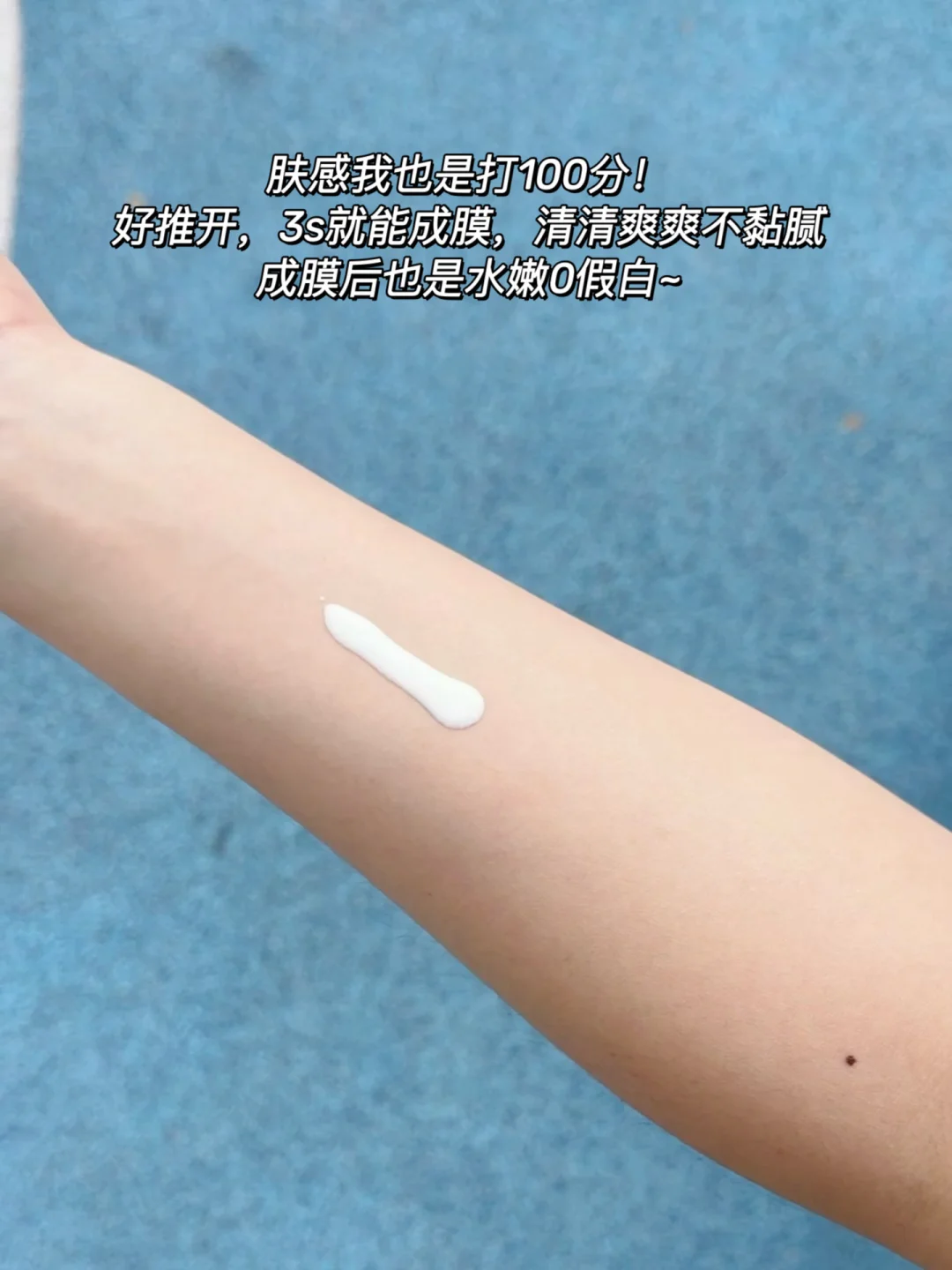 🔹更绝的是它遇水防护力增强1.3倍,出汗、玩水后防晒膜依然在线,泳池、海边、露营都能hold住,不用频繁补涂🖐。水牛奶质地丝滑好推开,3秒成膜不粘腻,还加了植萃🌿舒缓晒后肌肤,省心又安心~