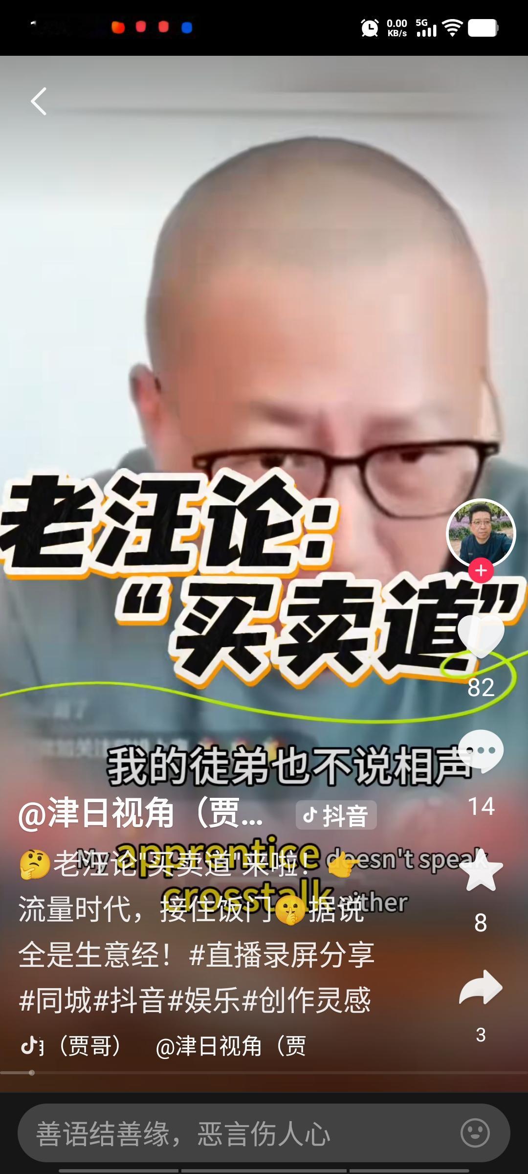 老汪在直播间谈论相声的买卖道,说的有点意思,这个行当如果不互相咬,是挣不来饭的,吃好吃坏,全凭一张嘴。他说别看我跟老郭打过官司,如果我还在说相声,也会想办法参加纲丝节,因为这是流量时代,这是饭门,谁都不会跟饭门有仇恨,嬉笑怒骂都是买卖,我如果有个儿子说相声,也会去德云社门口去溜达,因为这是饭门。我演的《马三立》电视剧的结尾曲,是韩磊演唱的,已经诠释了这行当的一切,剧中唱道,你是甲,我是乙,咱俩唱的是一台戏,吃的是张口饭,也是不得已,咬紧牙关寸的住,咱得把那肩膀低,嘻嘻哈哈,哈哈嘻嘻,绕来绕去,我得把你装进去,分什么甲和乙,人活一口气,就挣人民币,信不信由你。相声台上是说学逗唱,台下是行为艺术。相声界是互咬一嘴毛,你得咬出血筋来,才会有人看,你才有饭吃,这行180多年,是难度系数最大的一行,因为没有成本,没有任何借助,全凭一张嘴,就得把钱挣到手,用来养家糊口,没有比这行更容易的,也没有比这行再难的,这就是一个江湖买卖。别看老汪不说相声了,但他把这行吃的很透,想挣钱就得长本事,得让观众喜欢你,得知道怎样互相蹭流量,只有像德云社一样,深耕传统相声,与时俱进,创作更多新段子,才能在新时代站住脚,让曲艺这门艺术发扬光大。