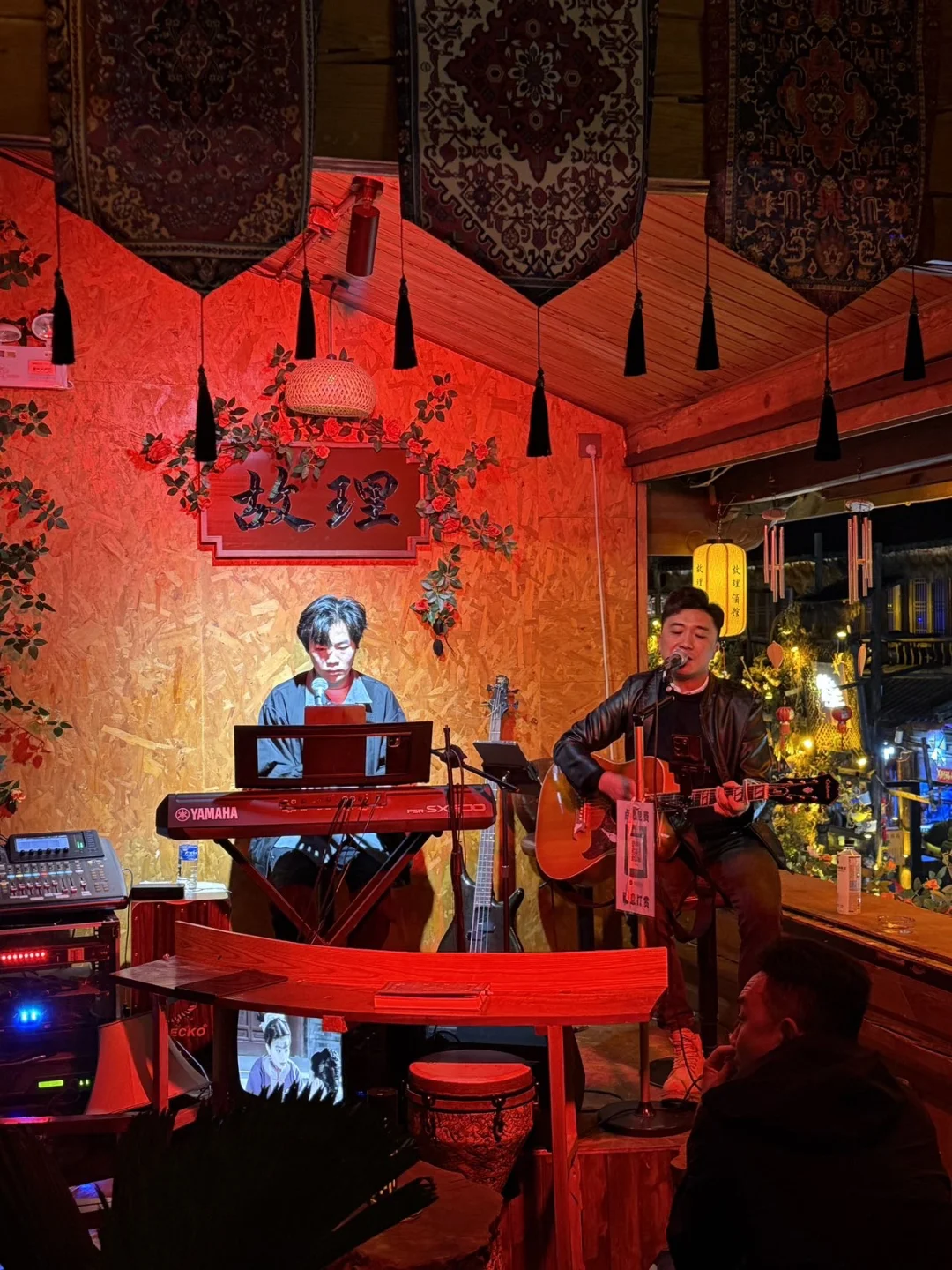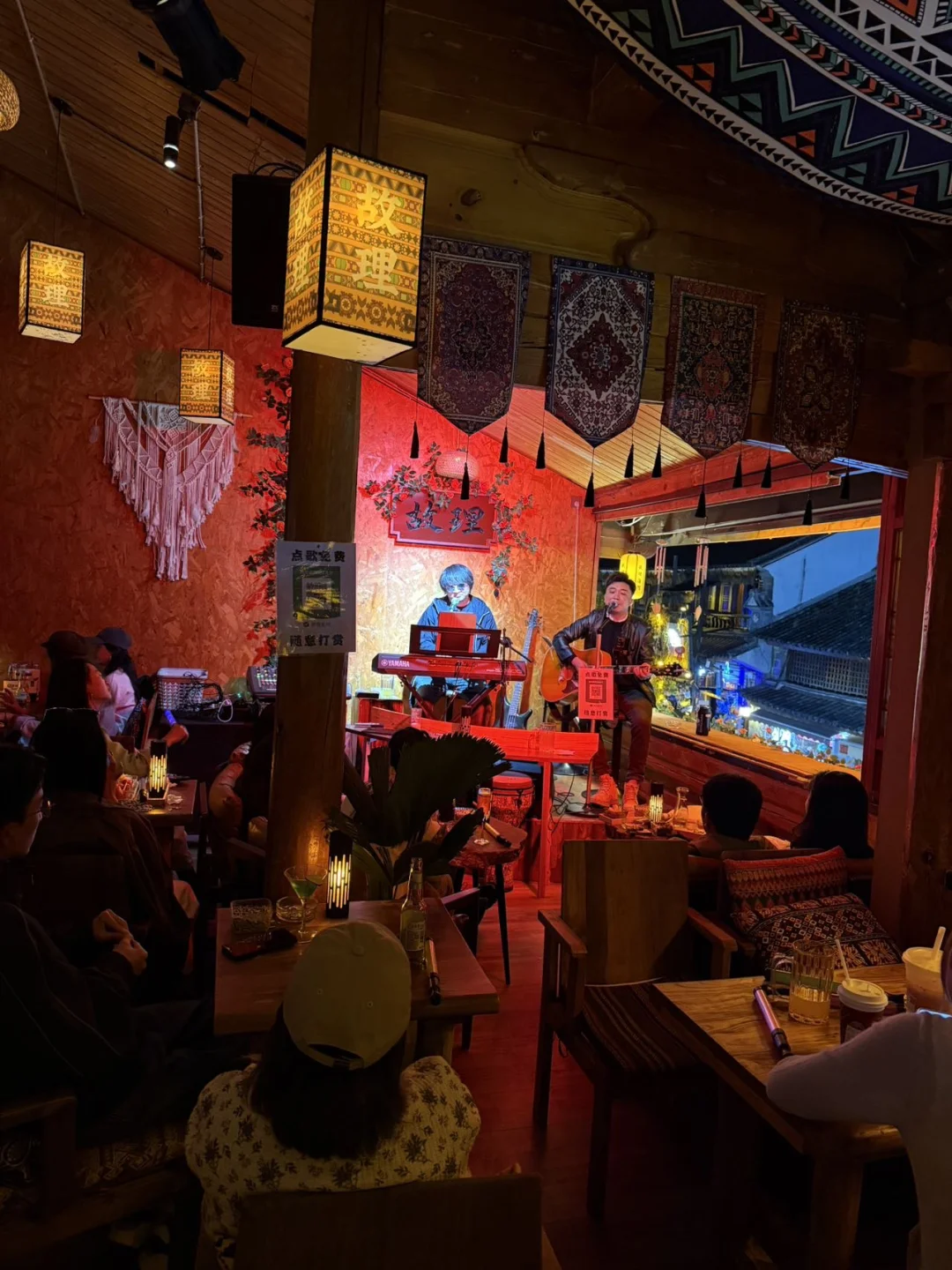 白天在洱海边吹够了风,晚上就钻进这家民谣小酒馆瘫着吧~ 藏在大理古城里的「故理民谣酒馆」,推门进去暖黄的灯光裹着温柔的民谣声,整个人瞬间就软下来了。 没有吵吵闹闹的蹦迪,只有歌手低吟浅唱,杯子碰在一起的轻响,还有满屋子让人安心的松弛感。 逛累了就点杯小酒,靠在软乎乎的座位上听歌,微醺着放空自己,一天的疲惫都被揉碎在歌声里了。 不管是情侣约会、姐妹唠嗑,还是一个人来发呆都超合适,安安静静的,连时间都变慢了。 来大理,就把浪漫和温柔都留在这个慢悠悠的夜晚吧✨