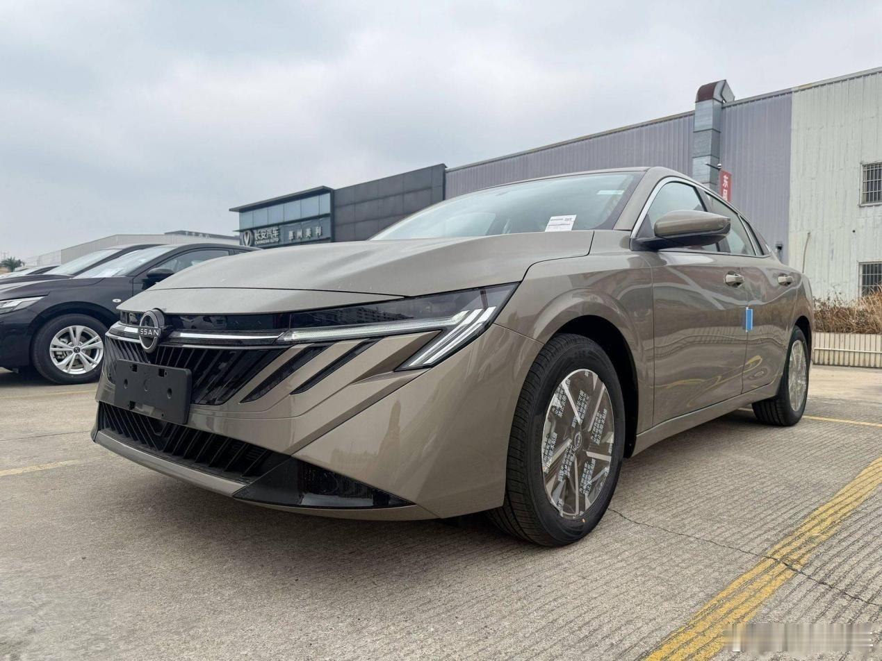 新轩逸的前脸这次彻底放飞了。大尺寸倒梯形格栅熏得黢黑,中间嵌着日产标,两边各甩出一道獠牙状的装饰条,配合那对犀利的大灯,整个一副“别惹我”的架势。