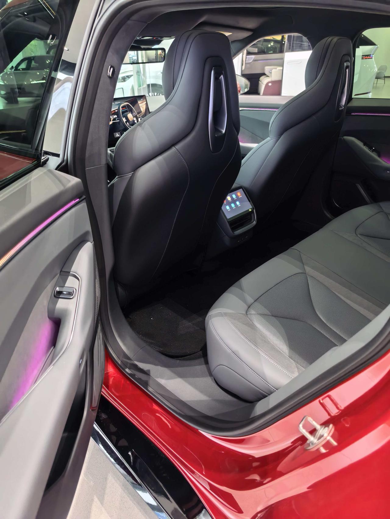 这辆小鹏P7的外观是红色的,内部是黑色的,还是非常懂年轻用户的。我发现车顶是麂皮的,还有无框车门,赛车样式的方向盘,确实非常喜欢,但是不知道为啥并没有安排副驾驶的屏幕,用来看电视,这也算是一点小遗憾吧。【来自懂车帝车友圈】