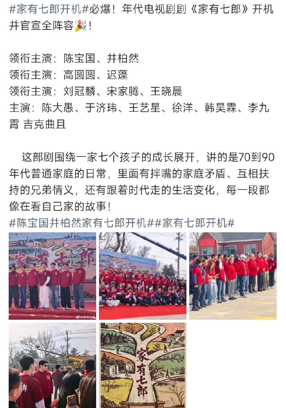 井柏然看着挺云淡风轻的,他的团队大概比较强硬。 家有七郎官宣开机,这个演员顺序有点令我意外。 从剧名来看,这是陈宝国领衔的大男主剧,但是从官宣演员来看,他却没有享受到一番男主的待遇,而是和井柏然“并列男主” 井柏然只是七郎中的其中一位,却压番了剧中的母亲迟蓬老师。 而且还压了高圆圆一头。 但是从开机照来看,井柏然挺低调谦虚的,不仅没有抢双c位,而是默默的站到了后排。 所以我觉得,抢番这种事,可能只是团队的想法,演员本人有时候也挺无奈的吧。
