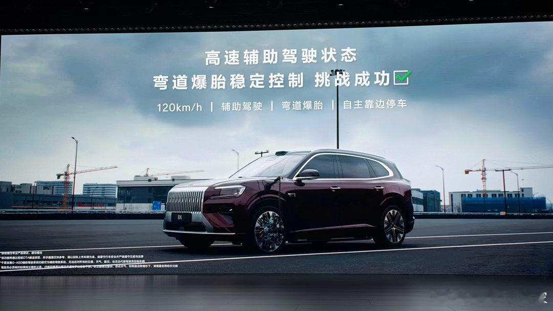 刚才展示的人驾驶爆胎,如今在高速上开车更多用的是智驾。那么当高速智驾时爆胎会怎样的,极氪8X也给了自己的答案。