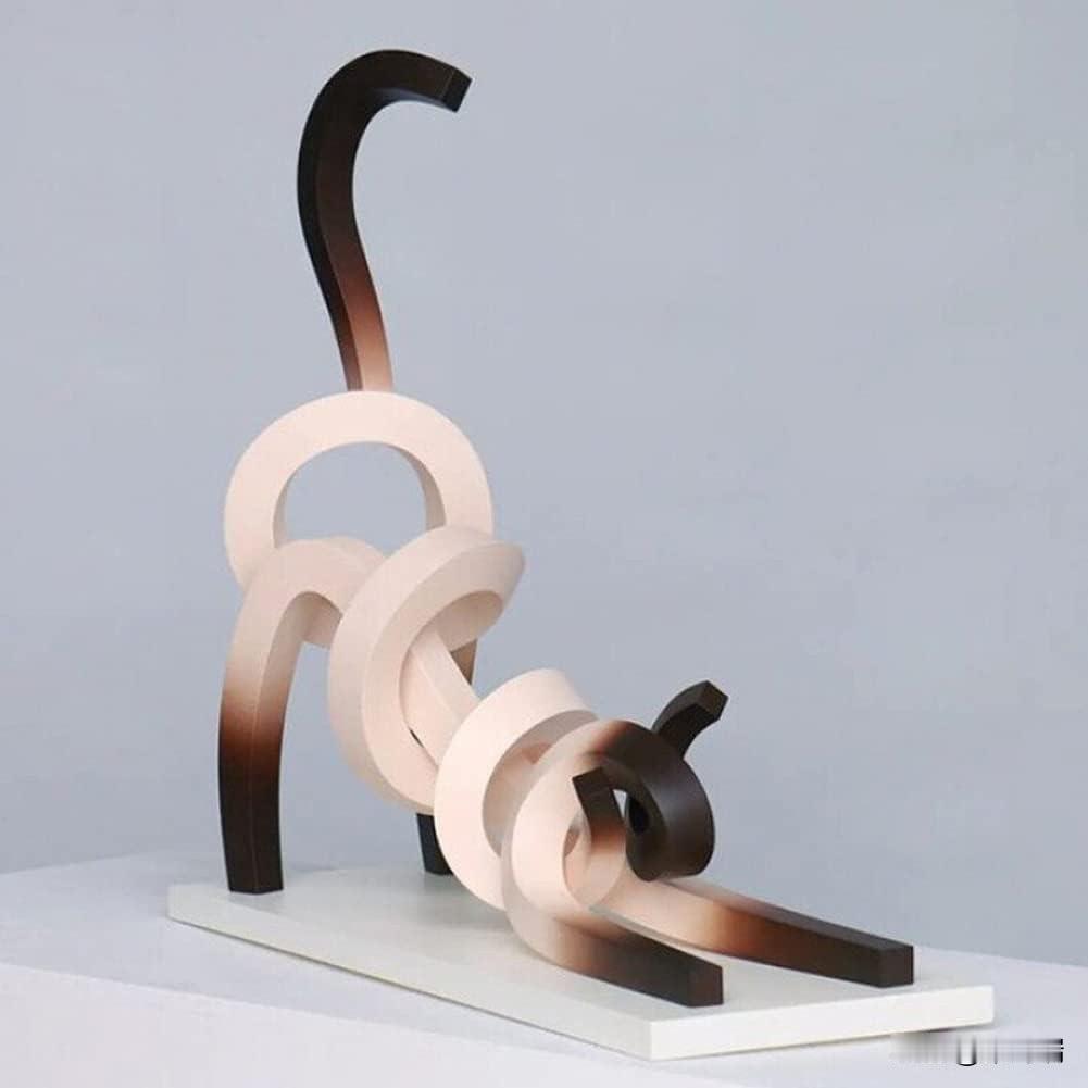 韩国艺术家이상수 (Lee Sangsoo) 创作的极简主义动物雕塑作品,题为《暹罗猫》(Siamese Cat)。 这种独特的艺术风格被称为“空中绘画” (Drawing in the Air),其核心特点如下: 创作灵感:深受毕加索简约动物线条画的启发。李相洙试图将二维的线条草图转化为三维的立体空间存在。 极简构筑:他仅使用最少数量的线条来捕捉动物的精髓和动态。雕塑主体由具有一定厚度的正方形管状结构组成,通过有节奏的粗细变化表现力度。 渐变色彩:他在方管的每一侧涂上不同的颜色或细腻的渐变色,这不仅增强了视觉上的动感,也让暹罗猫标志性的色块分布一眼就能被识别出来。 材质与工艺:这些作品通常先进行数字建模,再制作成实物。小型作品(如图片中的这款)多采用树脂或 3D 打印树脂材质,并手工打磨上漆;大型作品则会使用不锈钢。 该系列除了不同姿态的猫(如拉伸、坐姿、玩球等),还包括火烈鸟、鹦鹉、鹿和腊肠狗等多种动物。